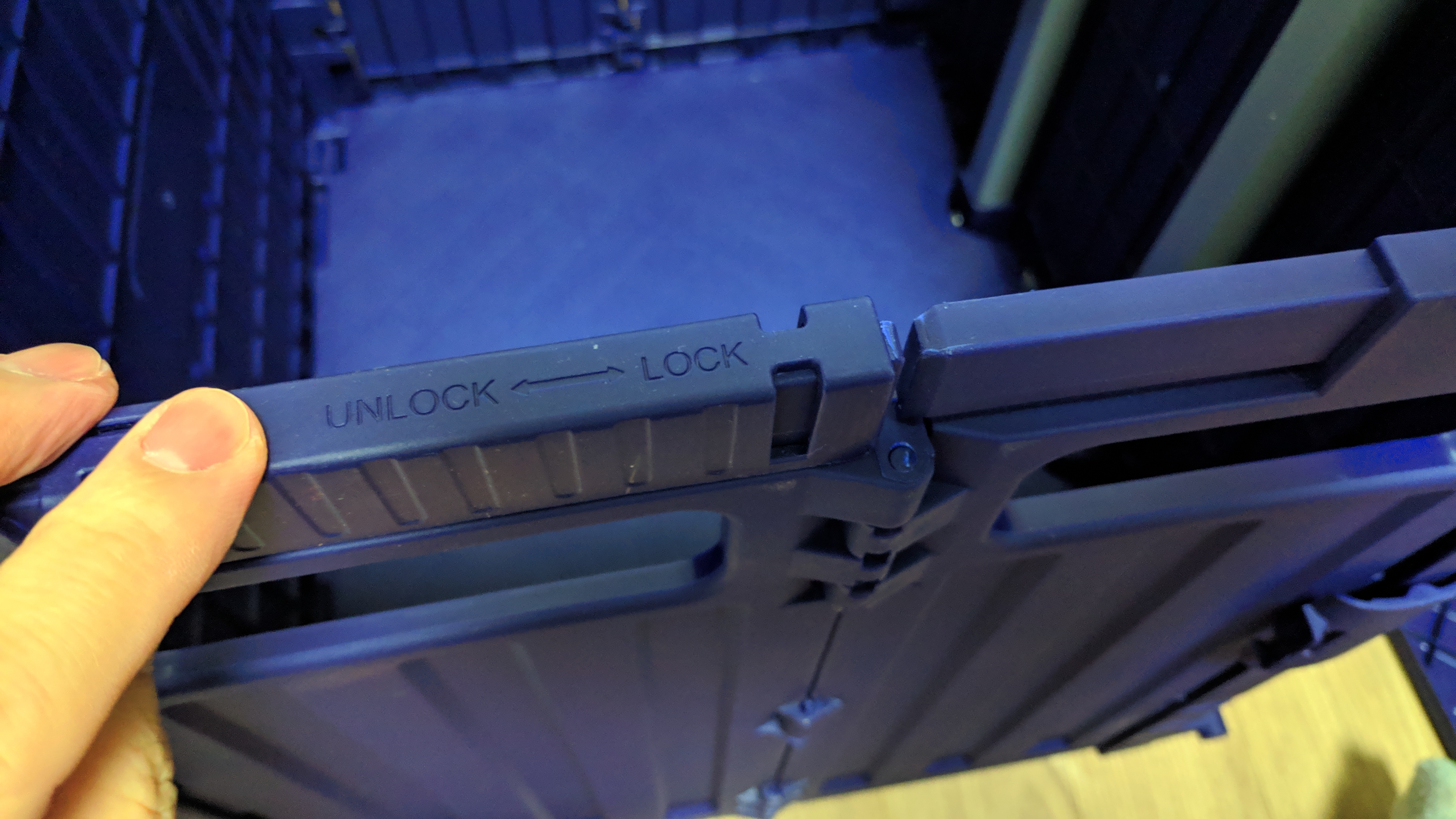 ↑ 보관하기 위해 접었을때는 옆에 고정클립이 있어서 벌어지거나 하지 않아요.