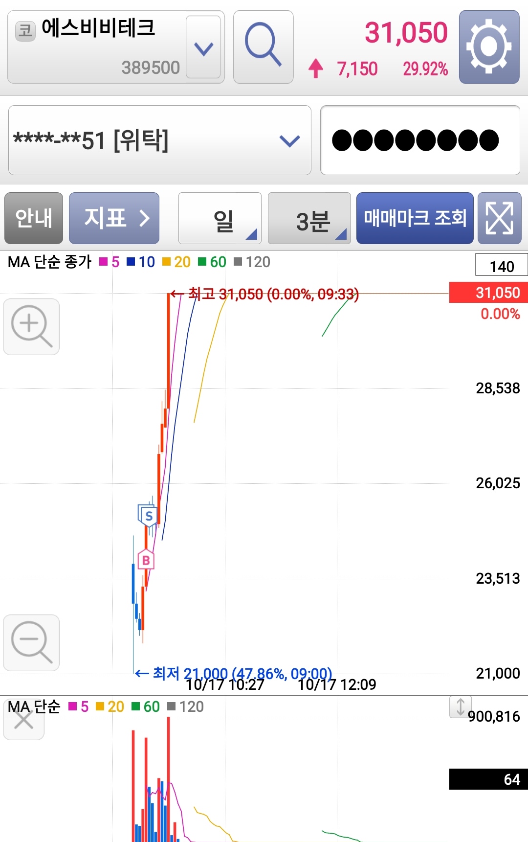 신규주는 방향을 잘 잡으면 하루 종일 매매할 수 있는 종목이라 좀 지켜보고 있었는데요.