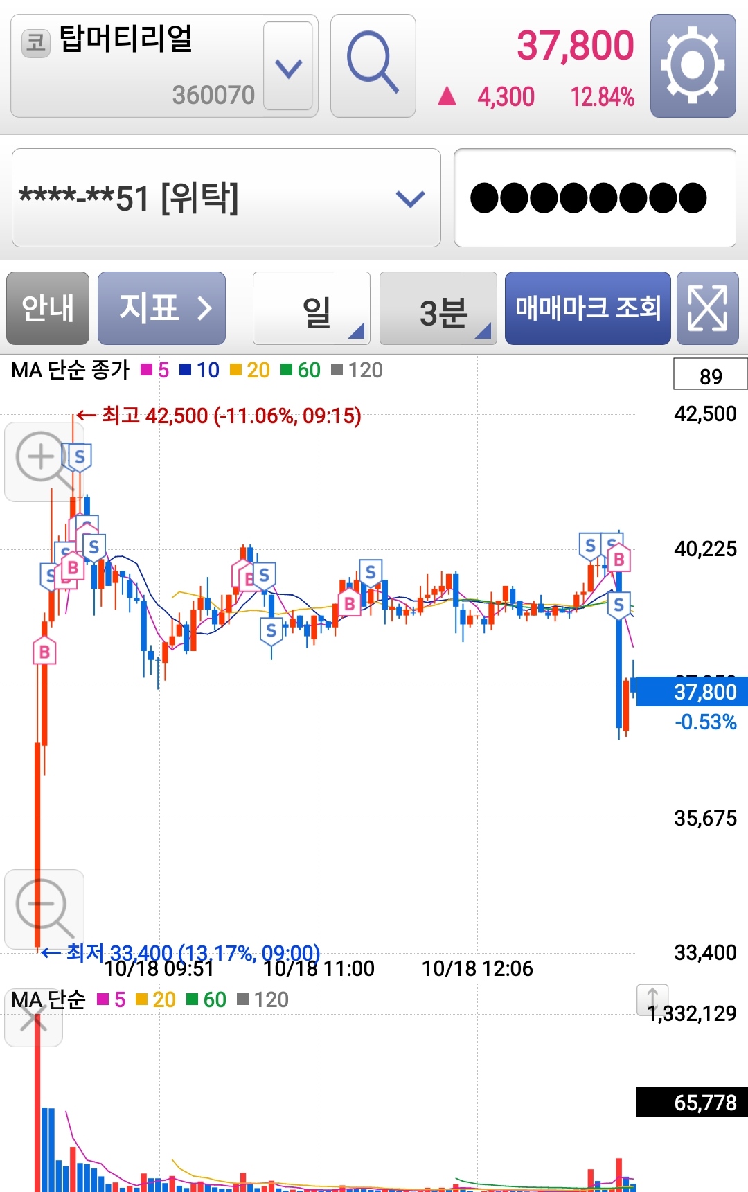 아침에 두번 매매해서 수익이 3% 가까이 수익이 나서 기분이 정말 좋았었는데...