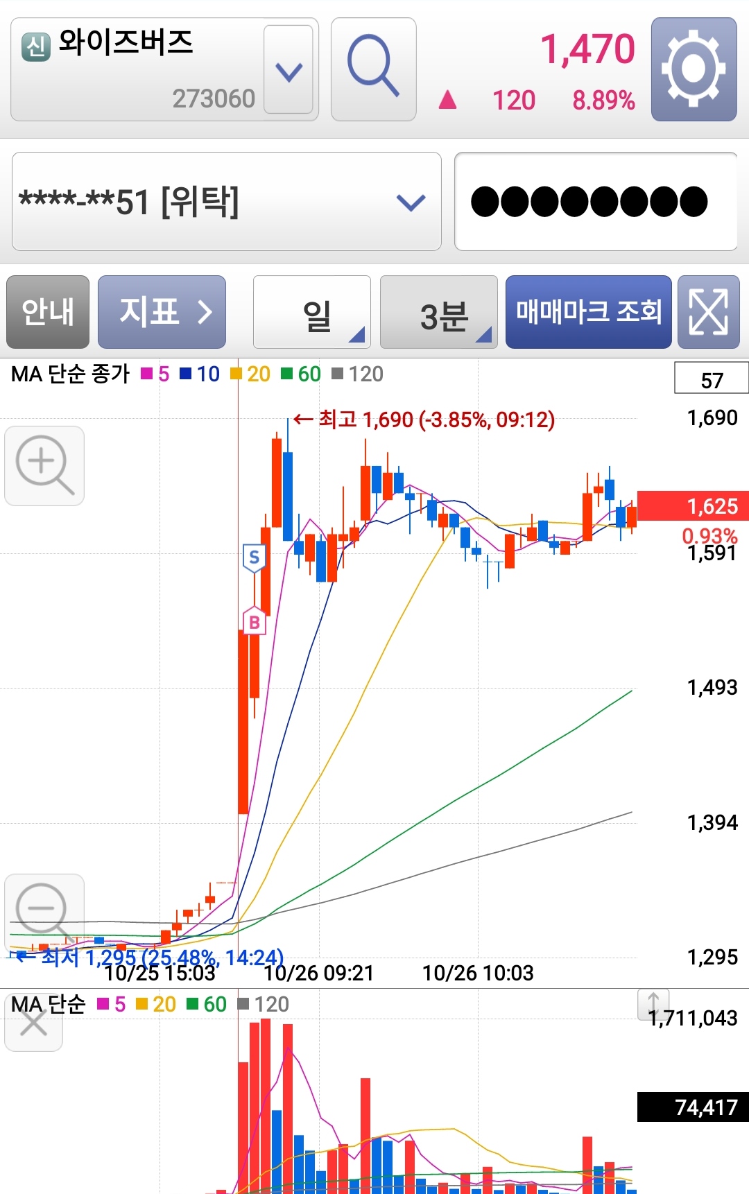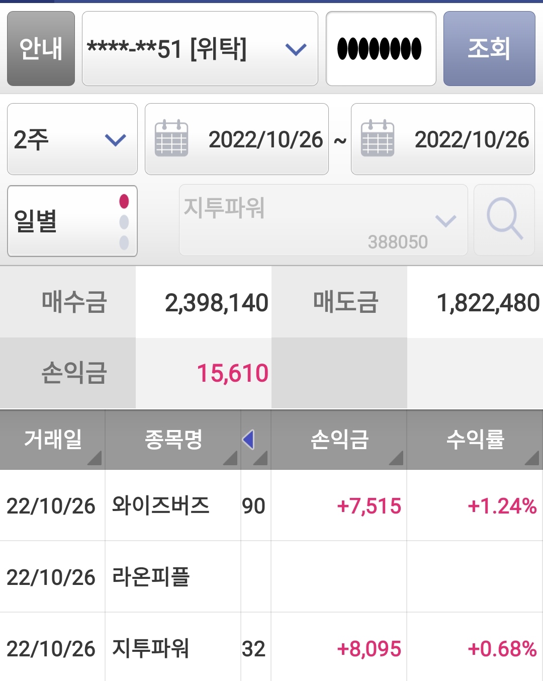 오늘은 와이즈버즈, 지투파워 매매했고요, 라온피플 종가배팅했습니다.