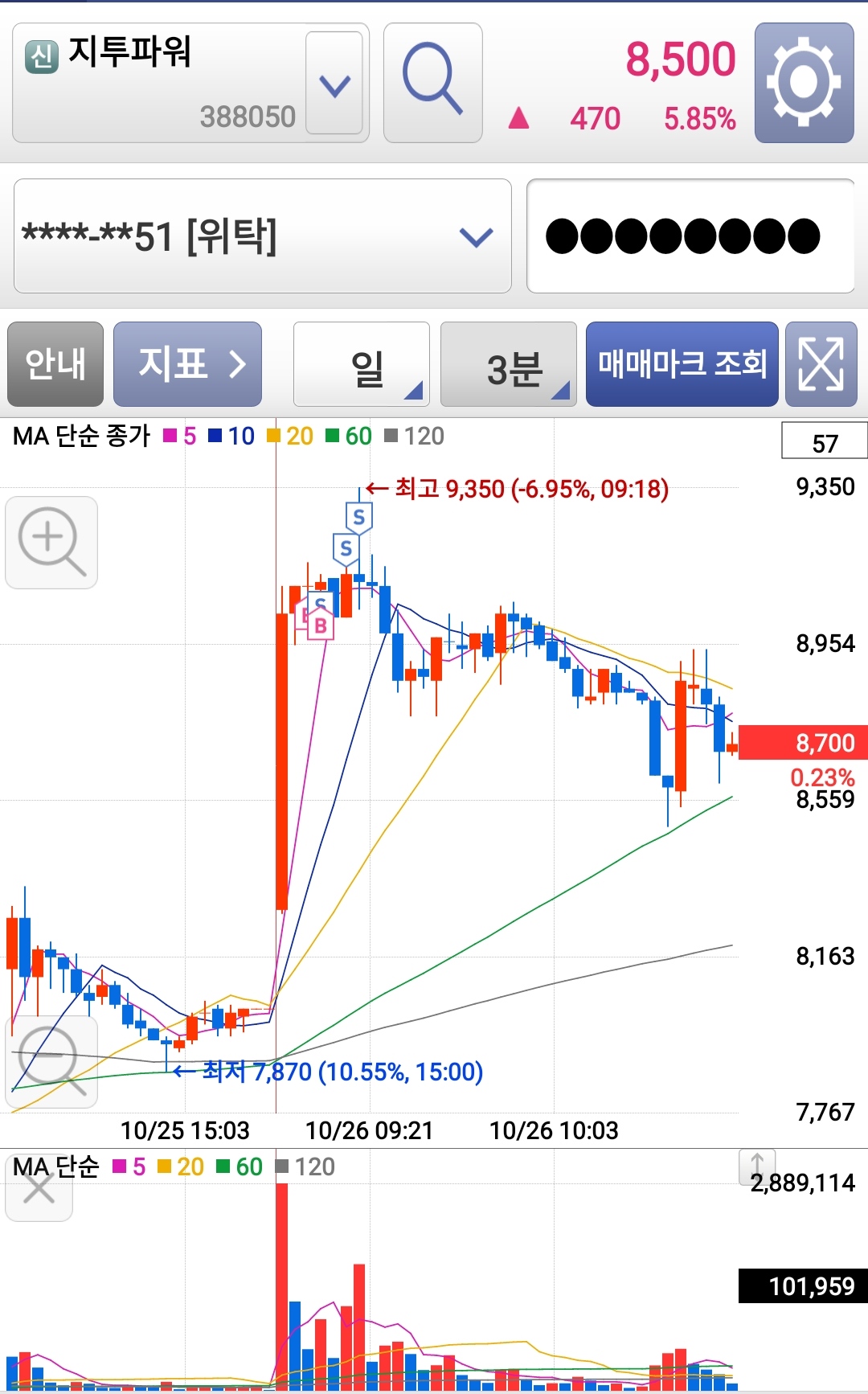 와이즈버즈 시가 배팅 주문을 넣어 놓고 지투파워가 너무 좋아 보여서 지투 파워를 시가 배팅으로 진입해 볼까 엄청 고민하다가 지투파워는 관심종목이 아니라서 기준봉으로 들어가야지 생각했습니다.
