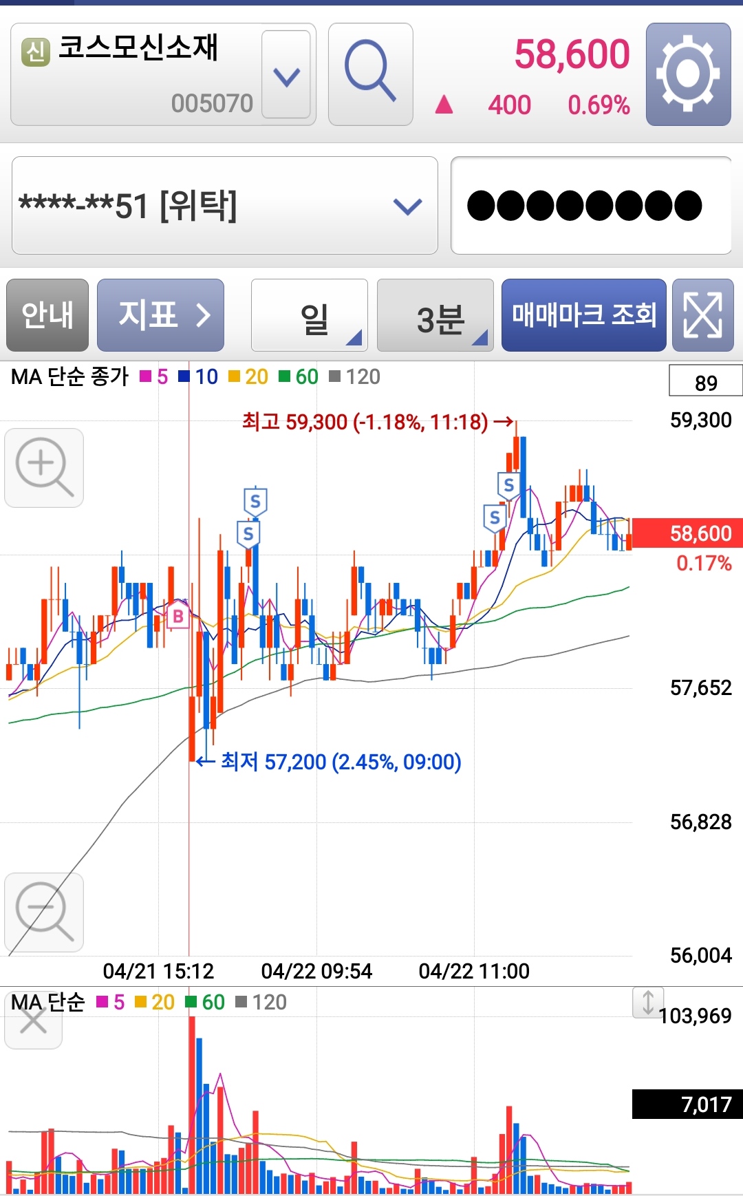 움직임이 느릿느릿한 종목이라 하루 종일 보자 생각하고 기다렸는데, 결과가 나쁘지 않아서 다행이네요.