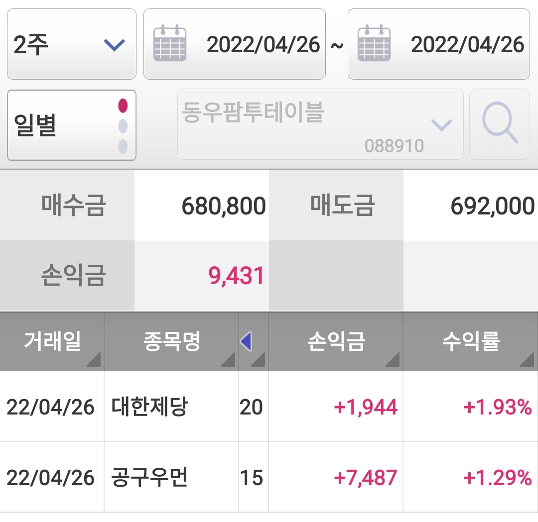 대한제당까지 비중이 잘 실렸으면 수익이 더 괜찮았을 것 같아서 아쉽네요 ㅋㅋ