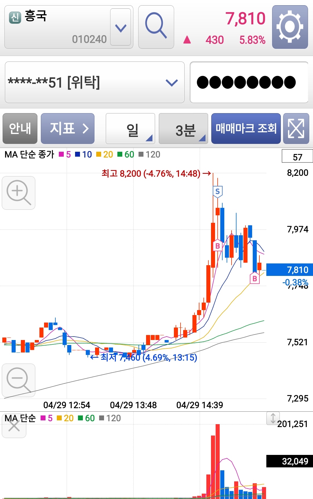 신규주는 방향을 잡는 것을 보고 진입해야 하는데, 장 초반에 무슨 생각이었는데 올라가는 걸 따라붙기 시작했는데,