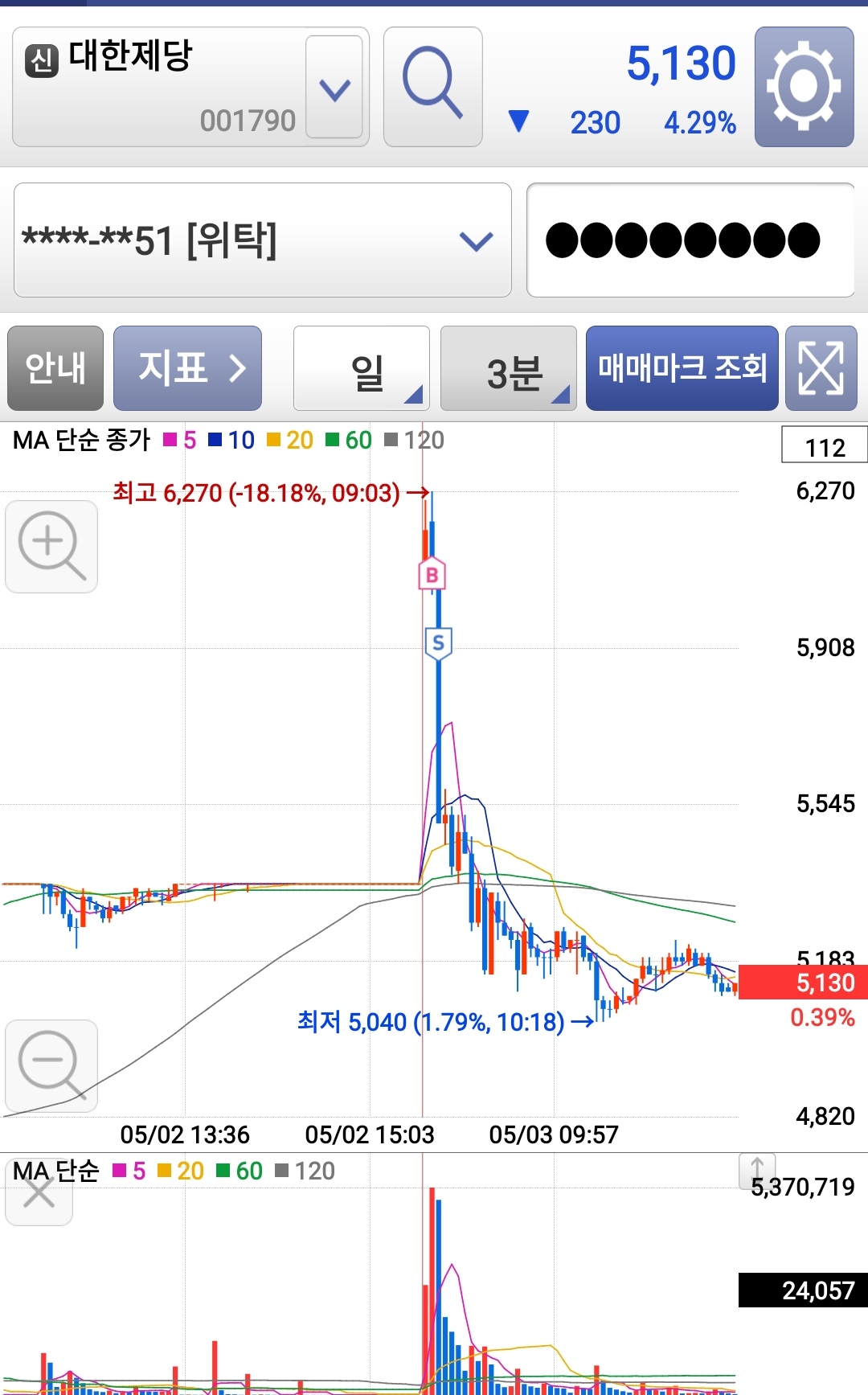 오늘은 대한제당 기준봉 매매, 동우팜투테이블 시가 배팅 진행했는데요.