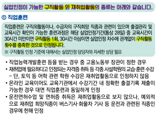 제목이 "실업인정이 가능한 구직활동 외 재취업 활동"이라고 되어 있네요. 이건 "취업활동"이라는 건지 "취업 외 활동"이라는 건지 아직도 헷갈리는 데요.
