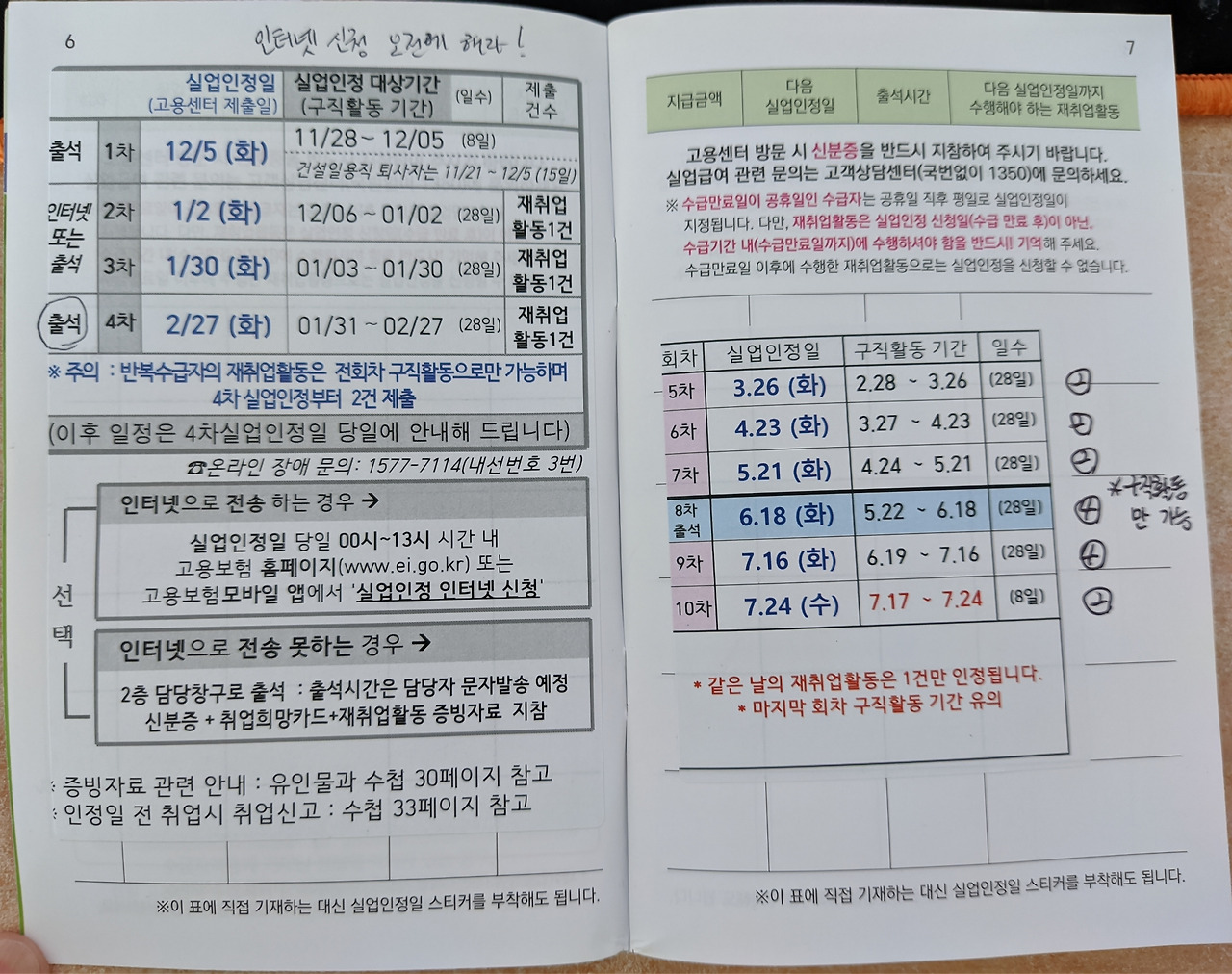 6차 구직활동이 끝나고 7차 구직활동이 진행중인데요. 5차부터는 "재취업 활동" 2회인데, 최소 1화 "구직활동"을 해야만 합니다.