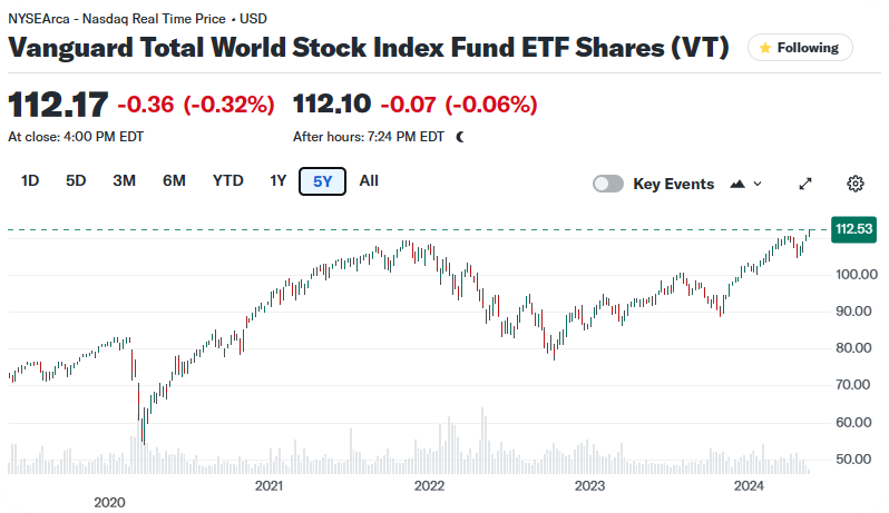 전 세계 주식에 투자하는 ETF 로 전세계 주식시장을 어느정도 대변한다고 볼 수 있는 ETF이다.