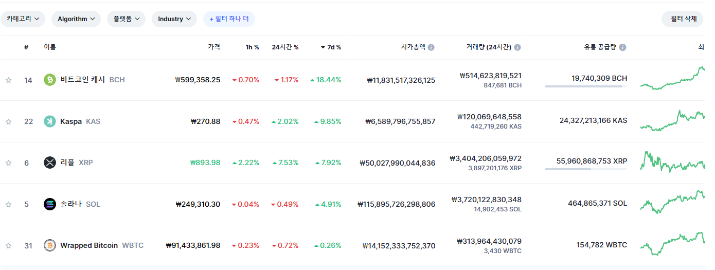 Kaspa는 업비트에 상장되어 있지 않아서 솔라나를 유지하는 것으로 하겠습니다.