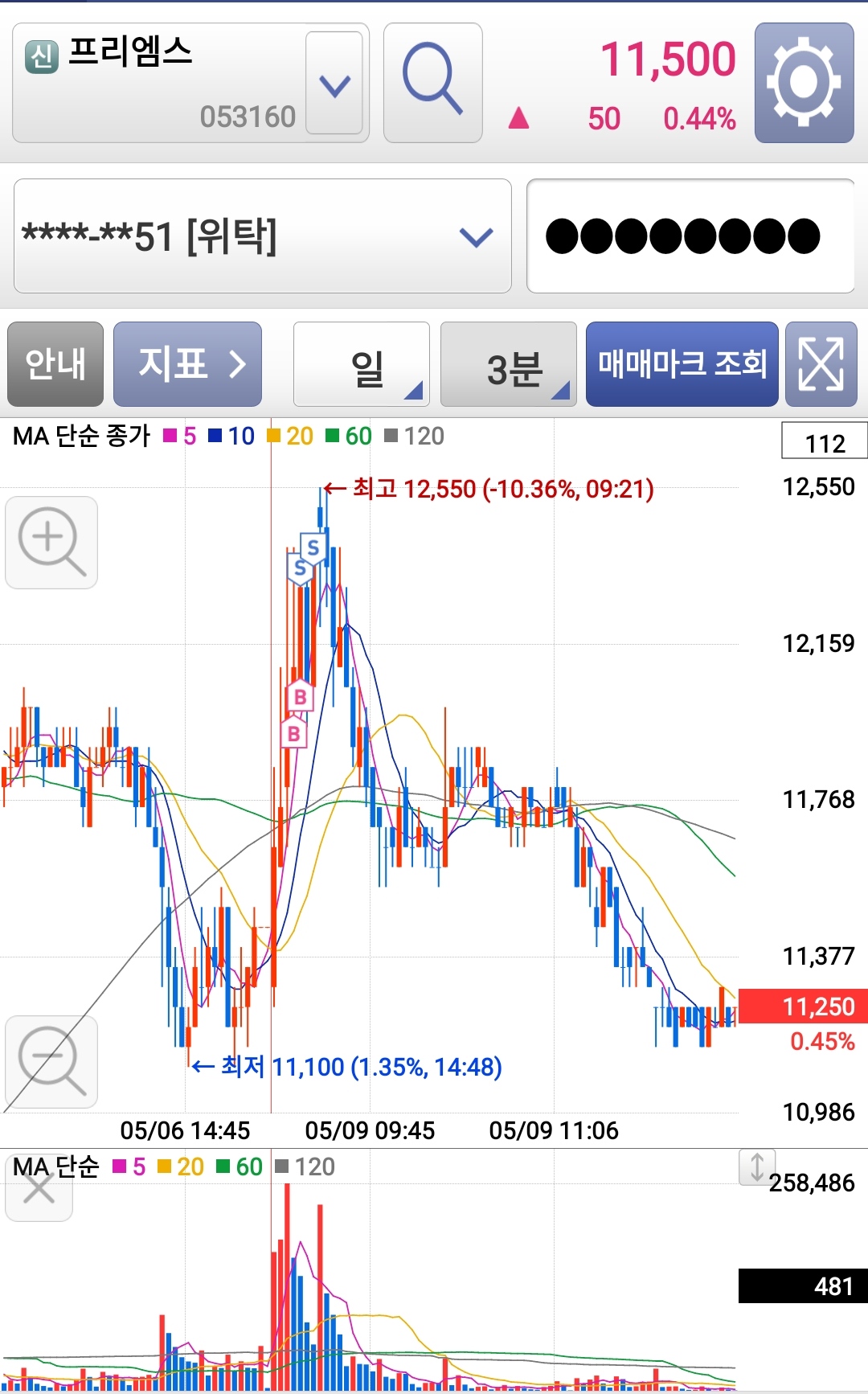 CS와 커플 매매를 하셨다고 하는데요. CS가 쭉쭉 치고 나가는 건 봤는데 프리엠스랑 커플로 매매가 가능한 종목인지는 몰랐네요.