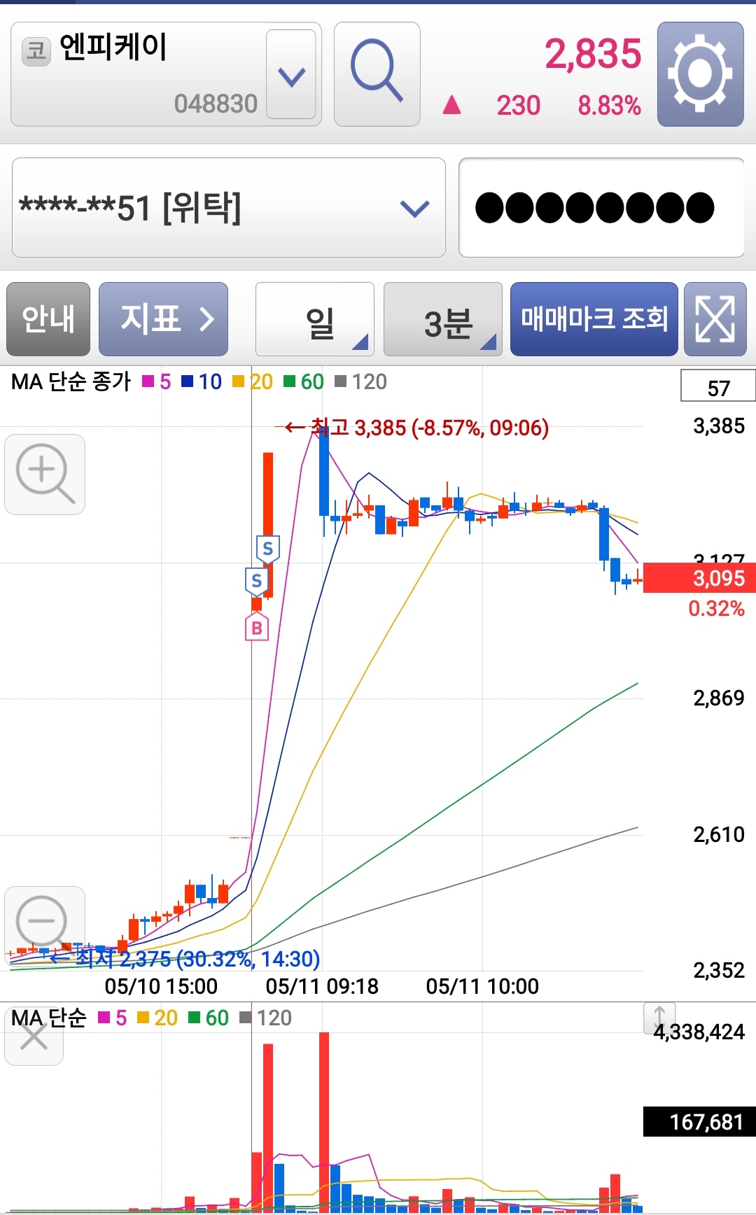 오늘은 엔피케이 한종목 매매를 했는데요.