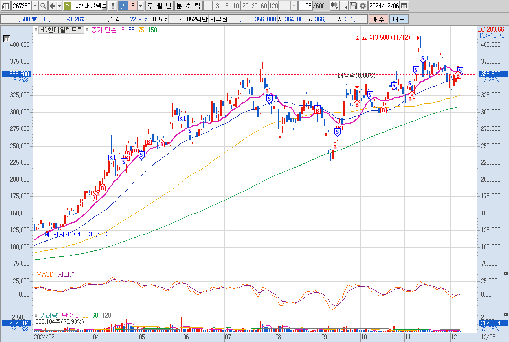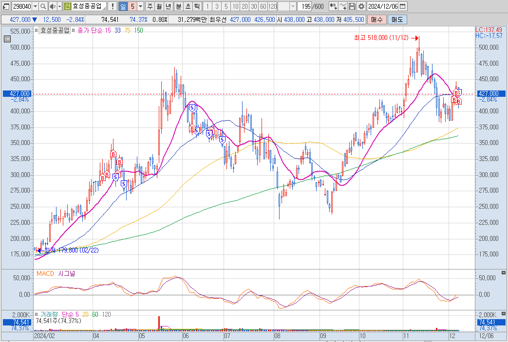 아름다운 상승 추세네요. 15일 이동평균선 돌파에 신입하였습니다. MACD도 0선 근처에서 잘 수렴하고 있고요.