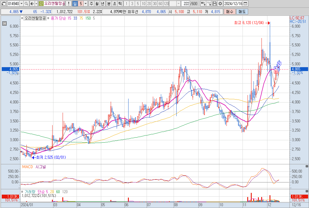 뭔가 잘못 되었다 싶어서 봤더니 종목명이 오리엔탈정공이네요. 이거 뭐 숨은 그림 찾기 하는 것도 아니고 젠장