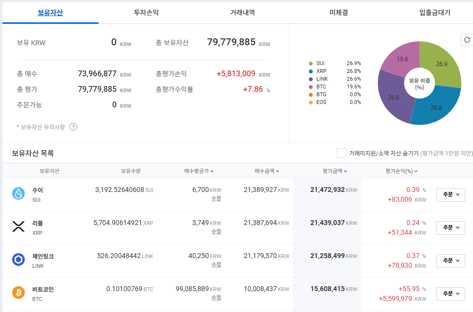 이번 매수 종목은 Chainlink, Sui, Litecoin 이 되겠습니다.