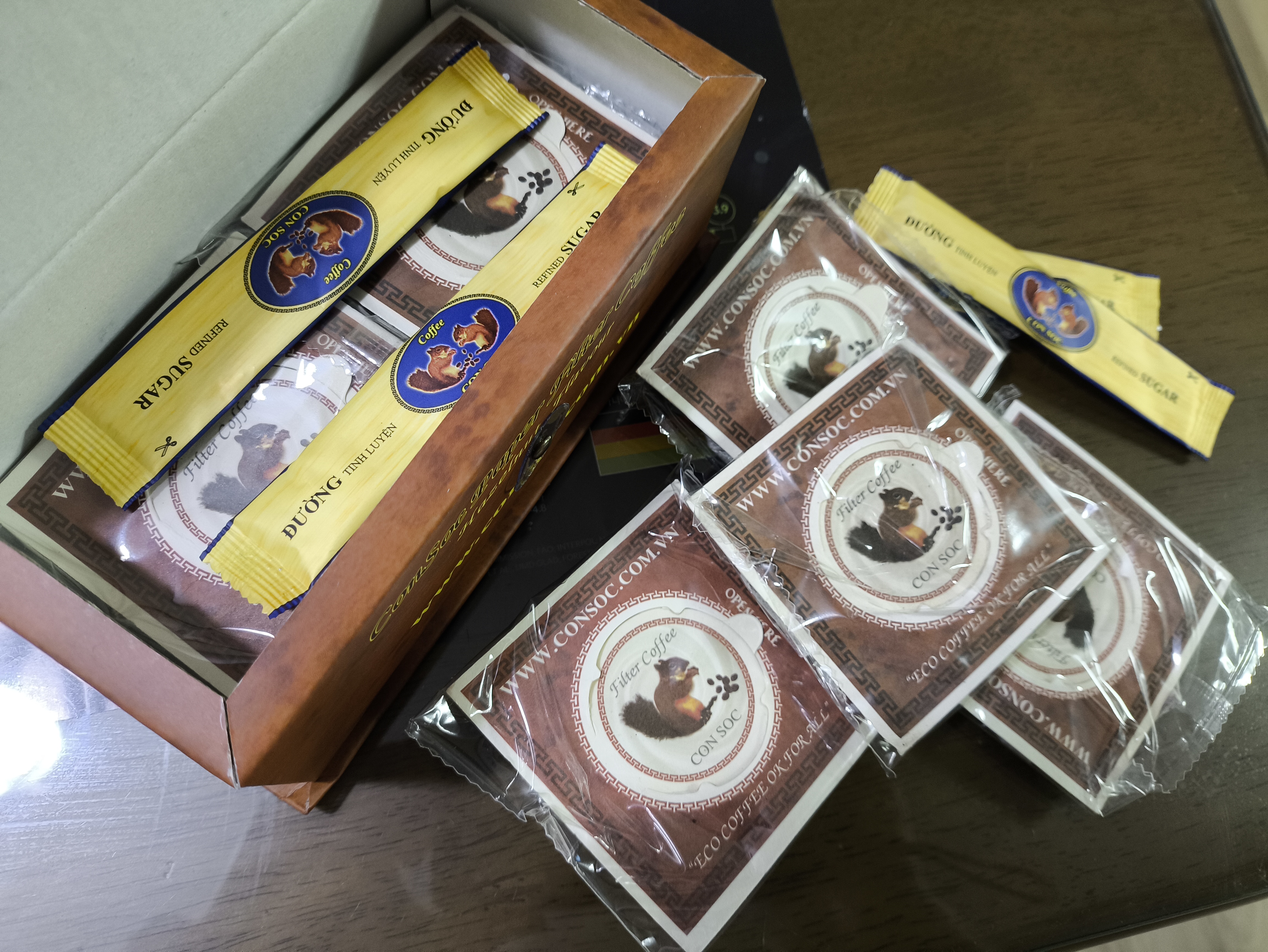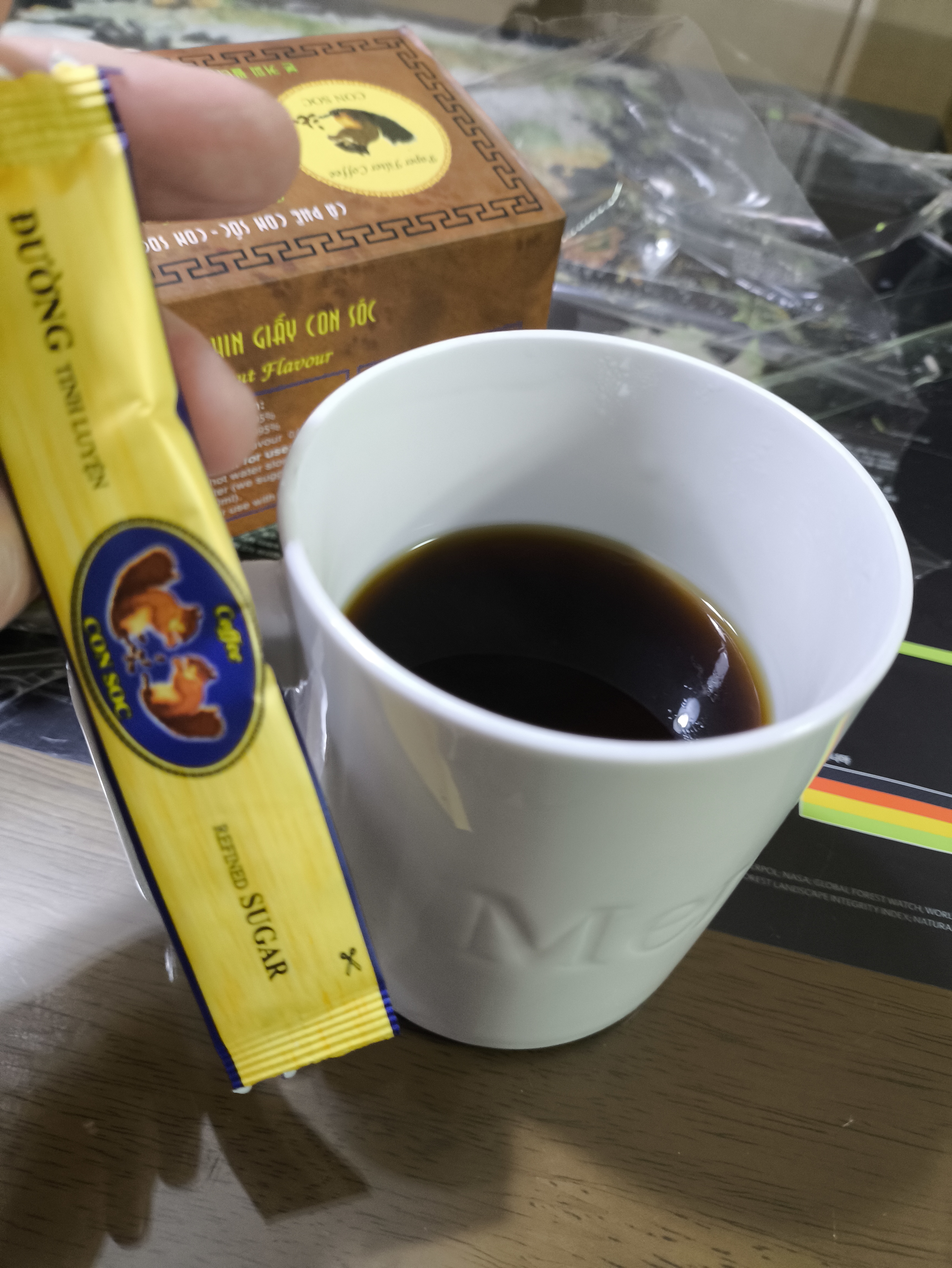다람쥐 똥 커피다 얘기하는 사람도 있지만 다람쥐가 잘 익은 열매를 따먹는 것을 보고 그런 열매를 수확하여 만든 커피다 하여 콘삭 커피라고 한답니다. 콘삭은 베트남 말로 다람쥐라는 뜻이라네요.