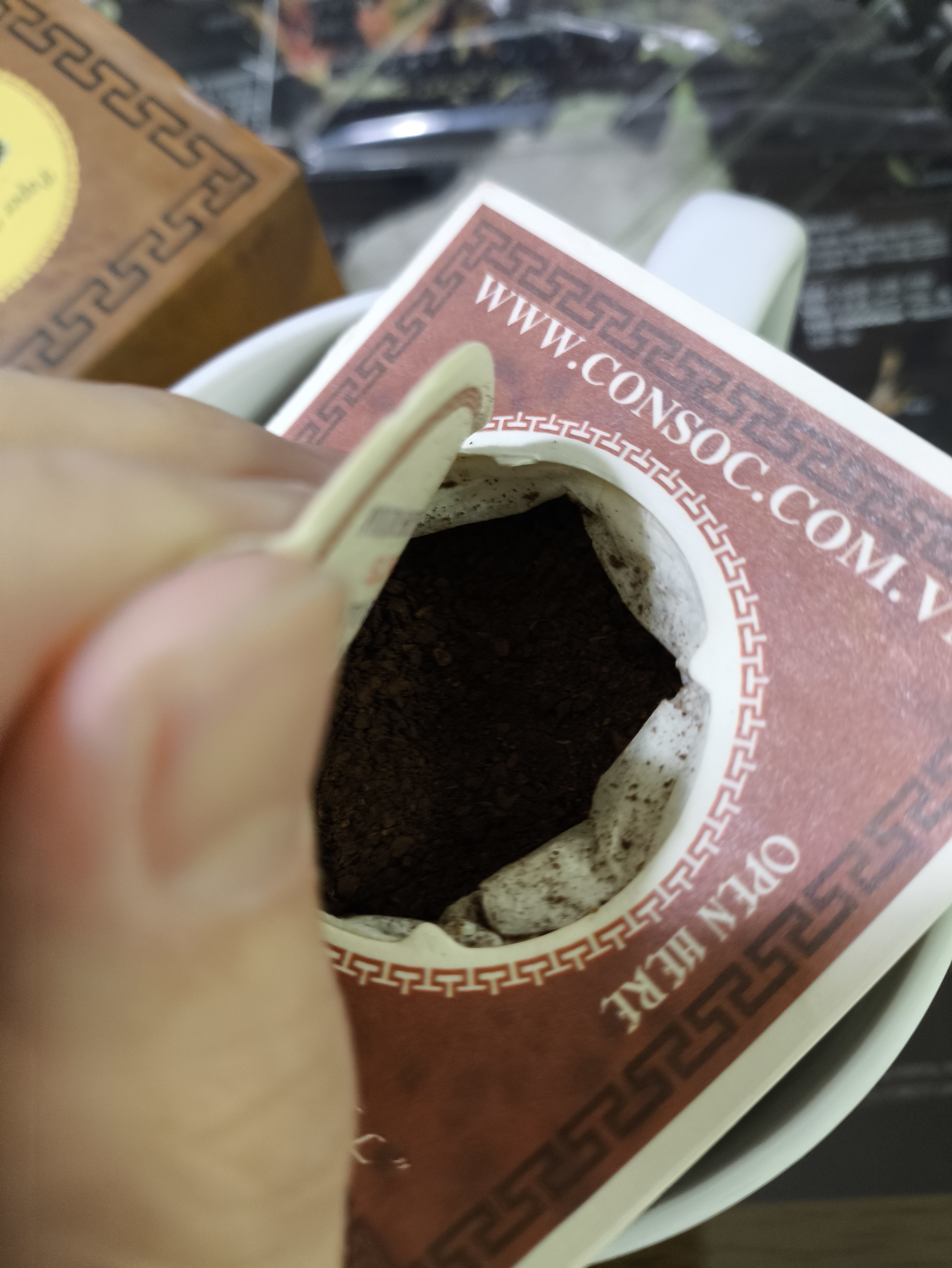 위의 뚜껑을 열어 보니 커피 가루가 보이는군요. 핸드드립 분쇄도보다는 조금 가늘게 분쇄된 것으로 보입니다.