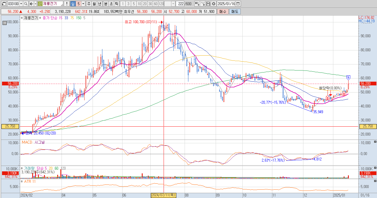 작년에 매매를 시원하게 말아먹고, 열심히 반성해서 올해부터는 배팅금액을 확 줄이고, 손절은 좀 더 길게 잡고 매매를 하고 있습니다. 지난 12월 24일에 진입했던 제룡전기가 오늘 날아가길래 매도했습니다.