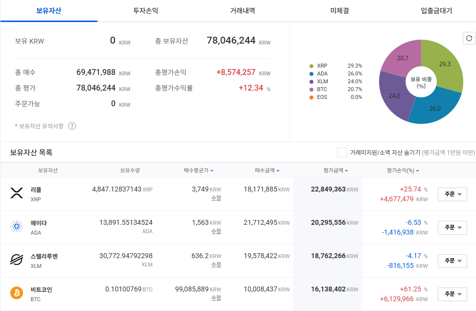 다음 비트코인이고, 체인링크 까지는 있는데 xrp는 주간 손실이었네요. 그럼 매수가능한 코인이 비트하고 체인링크 밖에 없는데, 일단 이번차수는 넘겨야 하나 고민이 되네요.