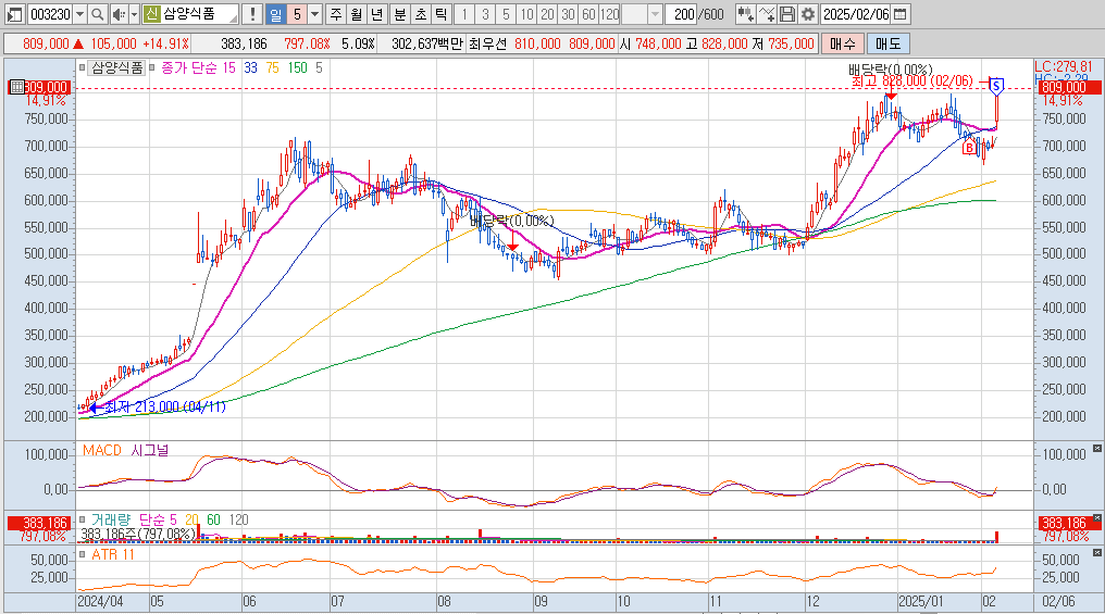 11월말 급락으로 정배열이 깨졌다가 다시 정배열을 만들어 가는 과정이라 아직 먹을 것이 많이 남아 보입니다.