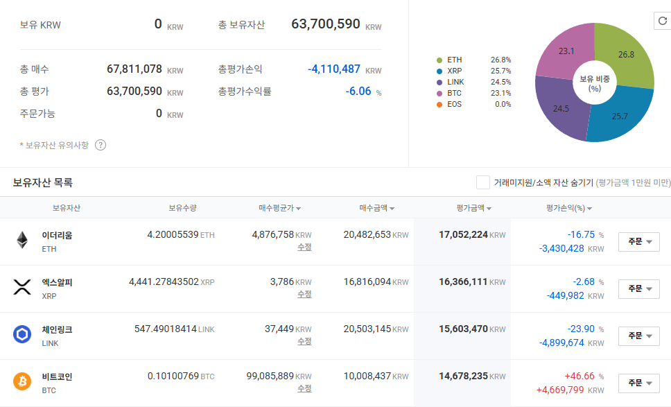 체인링크가 -24% 빠지면서 손실이 매우 크게 발생하였습니다.