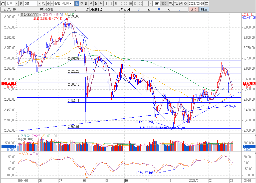 2025년 3월 7일 장시작전 입니다.