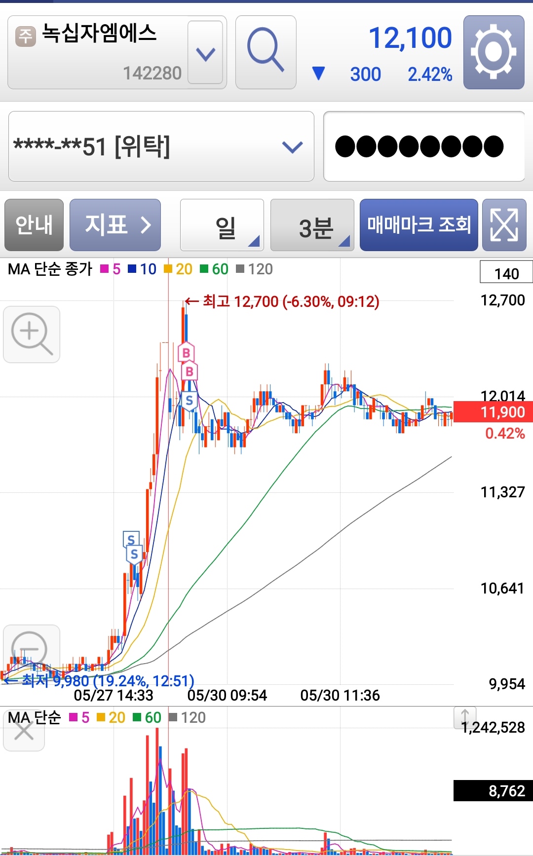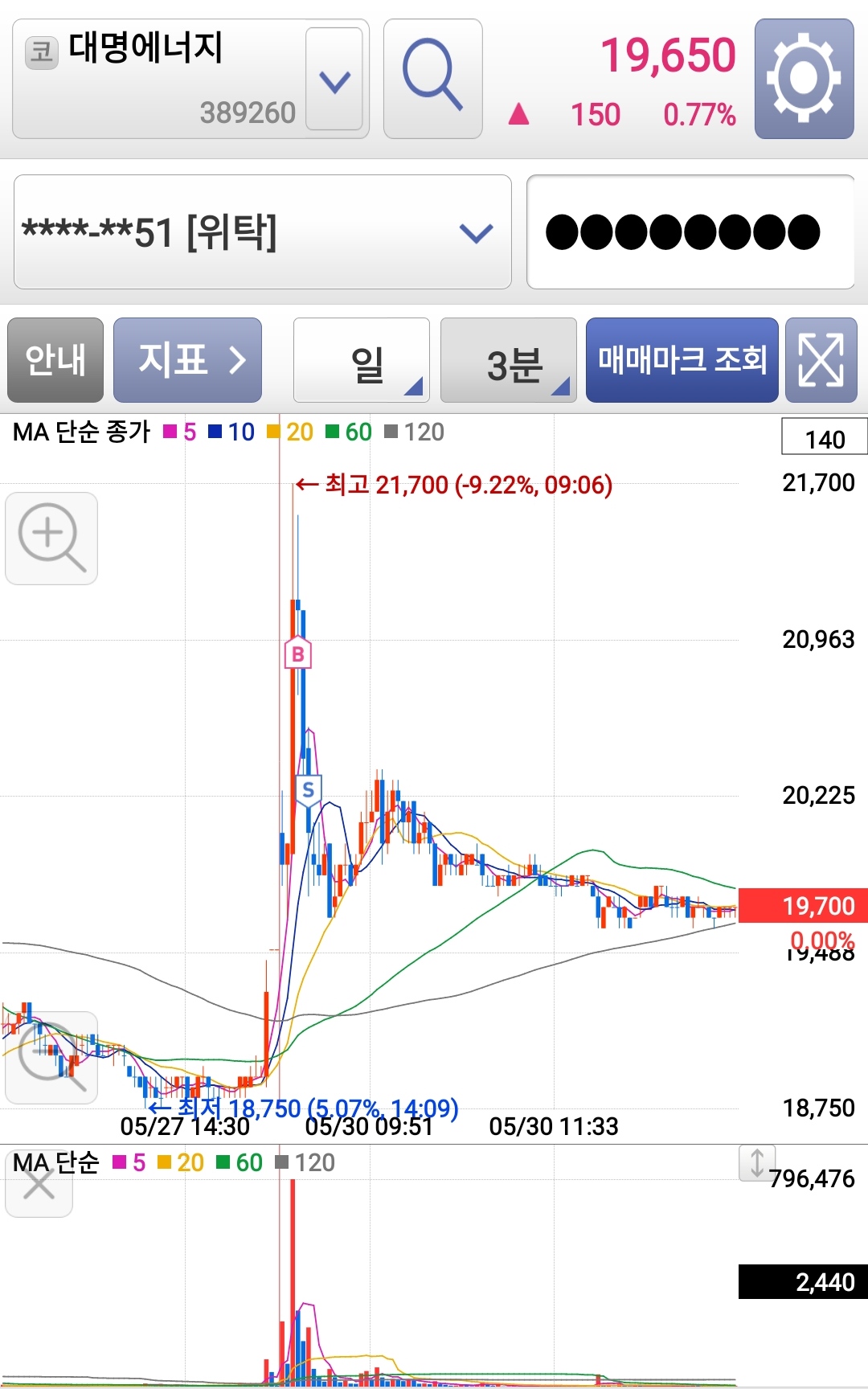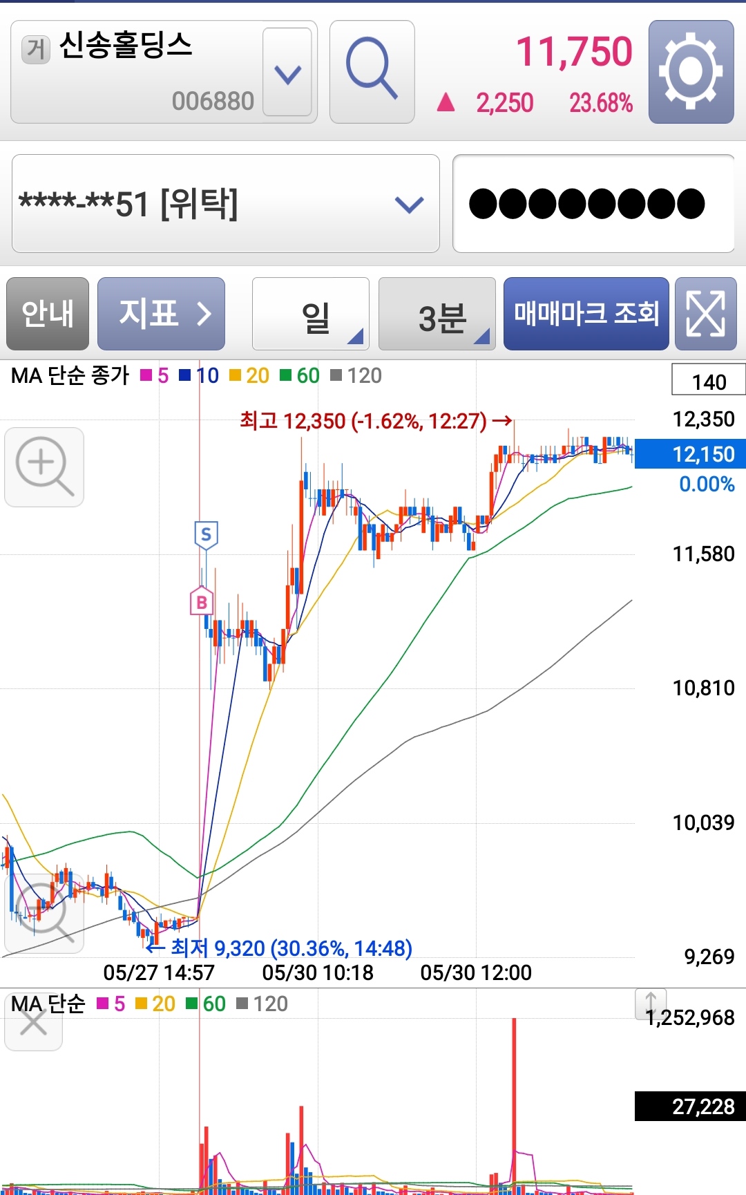 비중을 다 못 들어가서 손실이 조금 적기는 하지만 완전 뇌동매매였음. ㅠㅜ