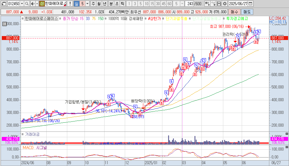 한화에어로스페이스 지수가 급상승하면서 대형주들이 잘 움직여 주는 시장이라 잘 안 하던 대형주는 할 수밖에 없었습니다. 24일 F존 진입하였는데요. 바로 매도기회 나왔을 때 다 팔았으면 됐을텐데 뭔 욕심인지 들고 버티다가 3일이나 처물려서 고생하다가 오늘 다 털었네요 오래 들고 있었다고 더 먹은 것도 없고 매도 후에 더 상승하지도 않았네요. 아무리 대형주라도 어느 정도 먹었으면 바로바로 팔아버려야겠습니다. +3.6% 마감하였습니다.