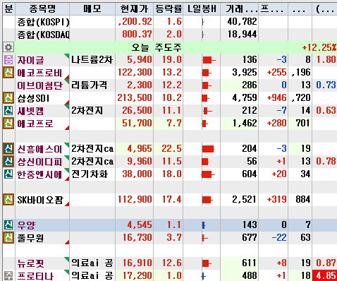 지수가 많이 좋습니다. 오전에 2차전지 테마가 잘 올라주고 있습니다. 상한가 한두 개 나올 분위기입니다. sk바이오팜이 실적 서프라이즈로 그게 상상하고 있고요. 관종에는 안 보이지만 조선주도 좋습니다.