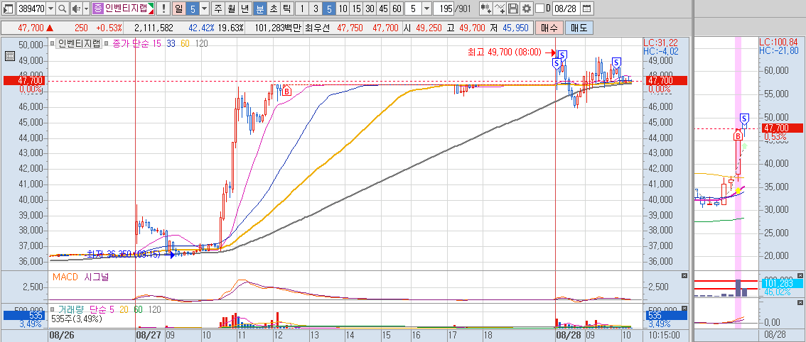 비만 섹터 대장이었던 인벤티지랩을 상따 했습니다. 오후 상한가에 거래대금도 2천억이 넘게 터지고 키움증권이 상한가 거래원으로 들어와있고 모든 조건이 정말 좋았는데 갭도 없고 시세 분출도 없었네요. 오전에 밀릴 때 f존 모면 비중 채워서 보려고 매수를 걸어 놨지만 2,3호가 차이로 체결이 안되고 올라가 버렸네요. 더 기다려 볼까 하다가 10시 전에 모두 털어 버렸습니다. +2% 정도 수익입니다. 기대보다 수익이 좀 적어서 아쉽네요.