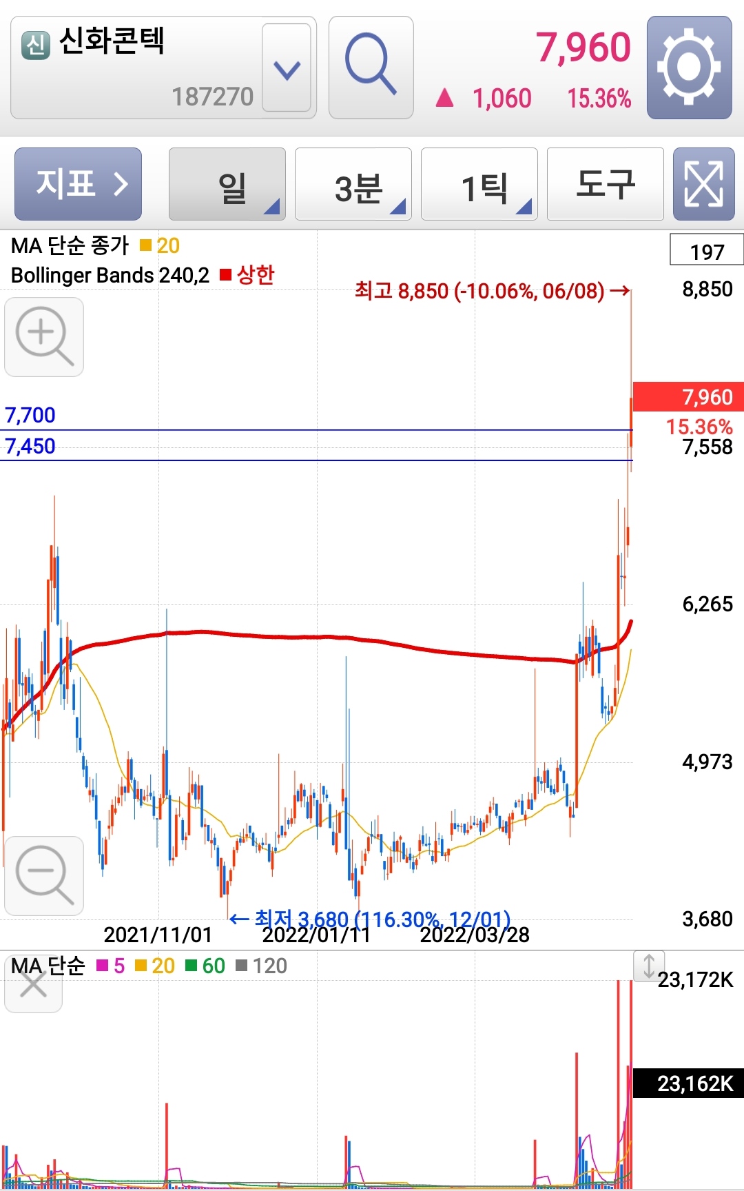 어제 종가 부근에서 모은 퍼스텍과 관심종목 중 신화콘텍을 매매하였습니다.