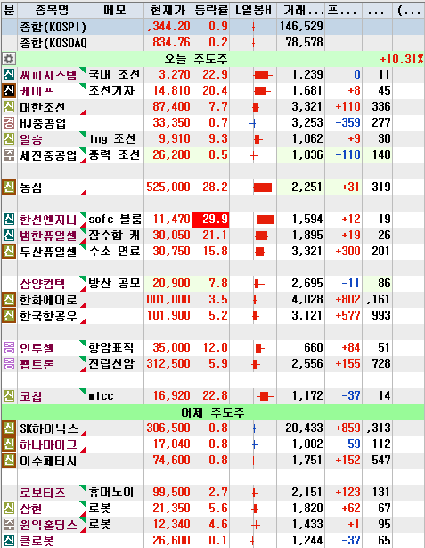 어제 오라클이 크게 올랐는데 그래서 데이터센터가 어쩌고 해서 sofc가 주목을 받아서 수소에너지 관련주들이 올랐다는 군요. 참 신비로운 주식 시장이네요. 한선에느지는 끼가 나쁘지 않아보이는데 상따는 못했습니다.