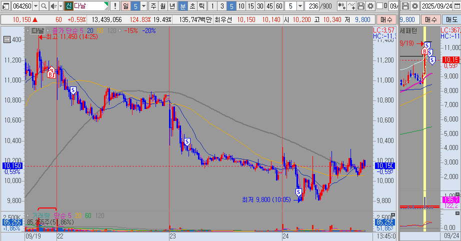 다날 주도주 종베들어갔습니다. 다음날 아무 반응 없이 밀려서 10시 절반 손절, 또 다음날 10시 남은 거에서 절반 손절, 오늘 10시 모두 손절했습니다. 최종 -7.17% 손실 처리하였습니다. 이제 다날은 그만해야겠습니다. 지난 6월에 스테이블코인 이슈가 시작되었을 때부터 4번 매매했는데 3번 손절이네요.