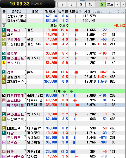 지수가 꽤 빠졌네요. 원전섹터가 좋았습니다.