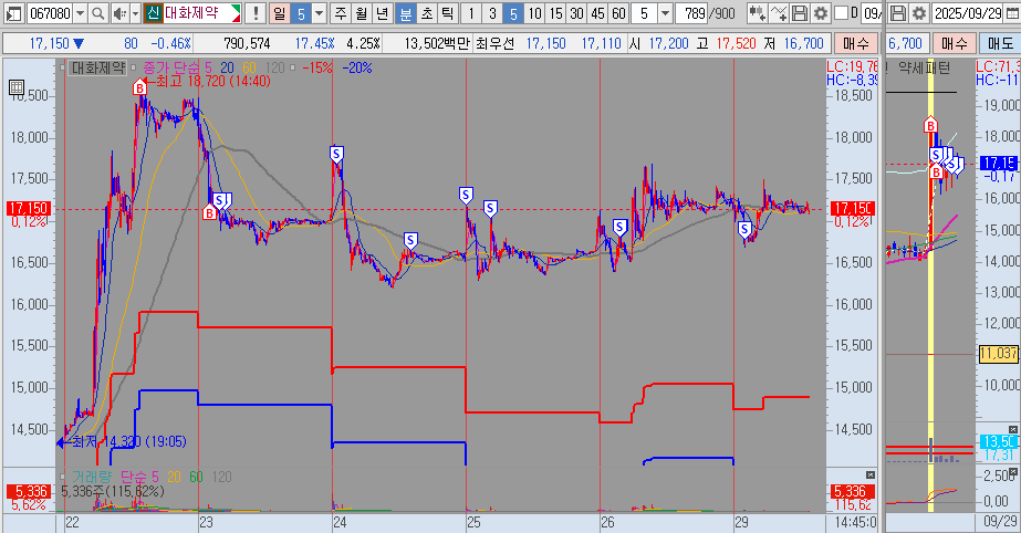대화제약 9월 22일에 자따 상따 하였습니다. 상따가 깨졌지만 당일 주도주라 생각하고 다음날 F존 추매까지 진행하였습니다. 하지만 질질질질 끌다가 큰 손실로 마감하였습니다. -6.99% 손실마감 하였습니다. 손실금도 손실금이지만 오랜 시간 동안 고통받은 게 멘탈에 데미지가 더 큰 것 같습니다. 지나고 나서 반성해 보자면 상따가 풀린후에 일부 매도를 진행하는 게 좋았겠다는 생각이 드네요. 그리고 한동안은 자따는 쉬도록 해야겠습니다. 멘탈이 좀 회복되면 다시 시작해야겠습니다.