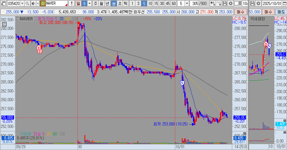 Naver는 주도주 종베 했는데요. 다음날 프리장에서 +2% 정도 상승해 줬는데 더 먹고 싶어서 기다리다가 손절 마감입니다. 9월 말 이후부터 이런 종목들이 많아져서 멘탈이 자꾸 박살 나는 것 같네요. 이날 우기투 들어가고 Naver는 들어갈까 말까 하다 들어갔는데 하지 말았어야 하나 봅니다. ㅠㅠ -4.1% 손실입니다.