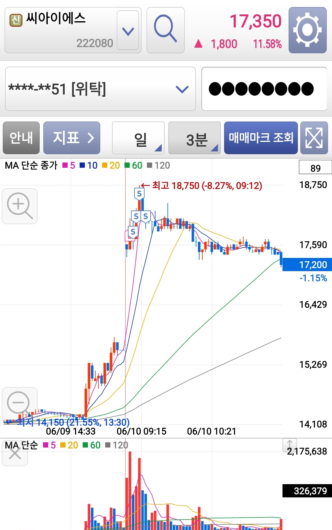 오늘 매매한 씨아이에스는 동행님들 중에도 매매하신 분이 있어서 뭔가 아주 잘못하고 있진않나보다 하는 생각이 들었네요. ㅋㅋ