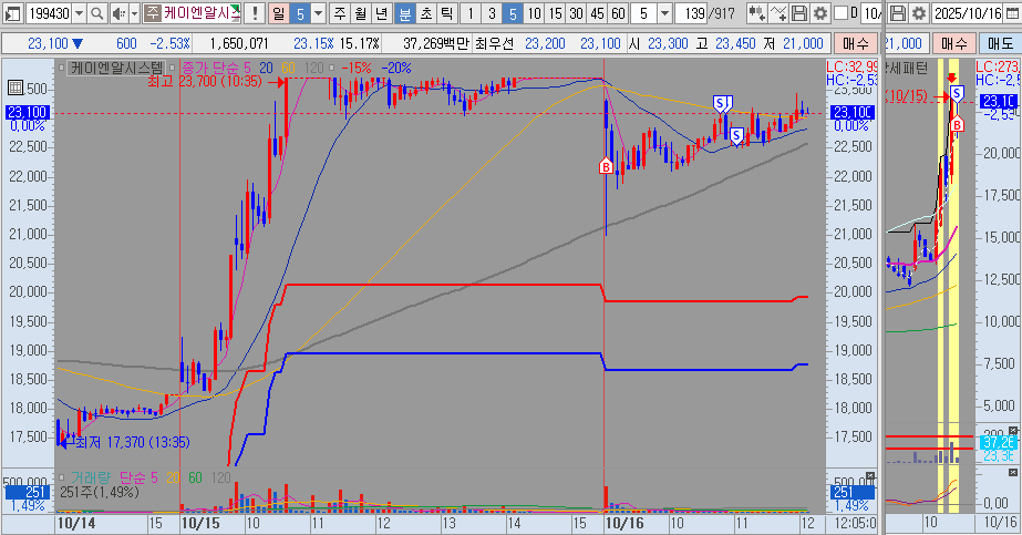 어제 상따를 못했던 케이엔알시스템를 오늘 아침에 38 스윙으로 매수했는데요. 하락 vi가 걸리면서 매수 타점이 좀 애매하게 되었지만 그럭저럭 매수가 되었습니다. 38 스윙이니까 일단 +3%에 매도를 걸어 두었는데 지지부진한 것이 오늘 못 팔겠구나 하고 기다리고 있었는데 11시 전에 팔렸네요. 마지막 s마크는 매도를 다 건 줄 알았는데 찌끄러기가 좀 남아서 급하게 매도한 겁니다. 장초반에 전일 상한가 종목들 잘 노려보고 있으니 기회가 오긴 하네요.
