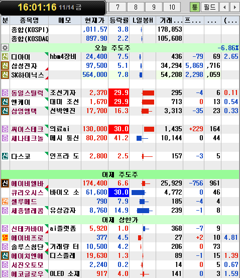 어제는 수능일이라 장마감이 4시반인데 아무 생각 없이 3시 반에 종배를 하였습니다. 3시 20분인데 동시호가가 안 들어가서 엄청 당황했었다는 ㅠㅠ 결과적으로는 운 좋게 모두 수익 마감하였지만 정신 똑바로 차리고 매매해야겠습니다.