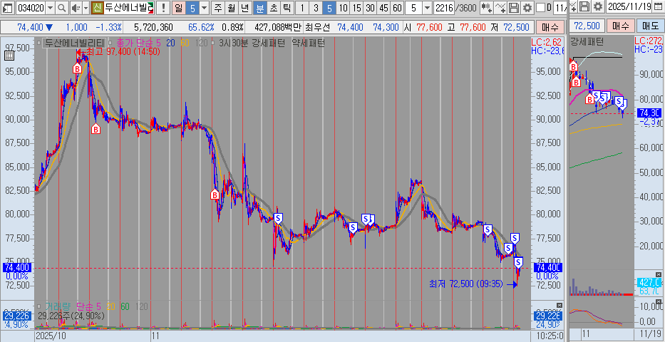지난 10월부터 처물려서 질질 끌던 두산에너빌리티를 오늘 모두 손절 하였습니다. -13.93% 손실 마감하였습니다. 주도주 종배로 들어가고 다음날 급락에 F존 추매하고, 또 급락에 아래 F존에서 또 추매 하여 비중은 커졌는데 계속 밀려서 오늘 모두 손절하였습니다. 크게 손절하였으니 뭔가 배워야 하는데 일단 짜증이 많이 나네요. 한 달 동안 열심히 벌어 놓은 거 한 종목으로 다 날렸네요. 두 가지 정도 꼭 기억해야겠습니다. 종배 다음날 10시까지 수익이 나지 않으면 최소한 절반은 매도를 해야겠습니다. F존 추매를 했으면 F존반등이 나오면 본전까지 못 가더라도 추매 했던 물량이상은 반드시 덜어내야겠습니다. 대형주이고 이슈가 아직 남아있다는 생각에 계속 버텼는데 그러지도 말아야겠습니다.