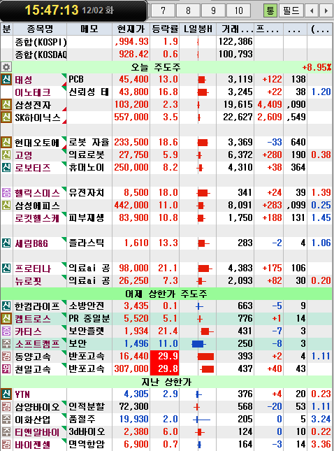오늘은 주도주 찾기가 쉽지 않은 날이네요.
