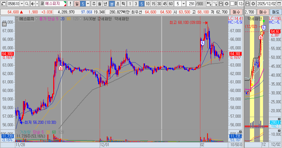에스피지는 11월 마지막 거래일에 주도주 종배 하였습니다. 야시장에서 겁나게 빼버리네요. ㅠㅠ 그래도 주도주로 보고 진입하였으니 f존 추매를 걸어 두고 기다렸는데 F존은 오지 않고 반등이 나왔는데 +3%에 걸어둔건은 아슬아슬하게 체결이 안되고 밀려버렸네요. 그냥팔껄그냥팔껄 껄껄껄 거리면서 하루 더 보기로 했습니다. 오늘 프리장에서 +3% 넘어가길래 모두 정리하였습니다. +3.48% 수익마감입니다.