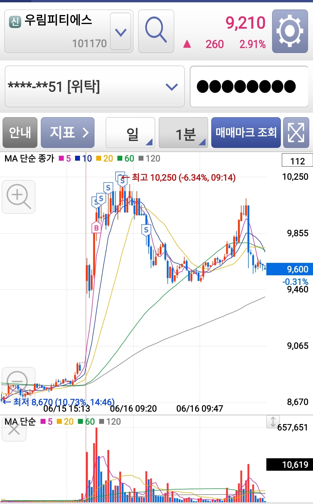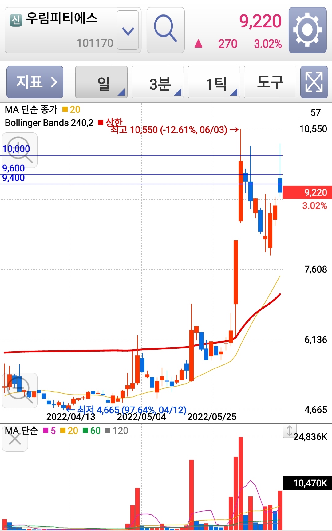 우림피티에스 기준봉 매매로 좀 만회했네요.