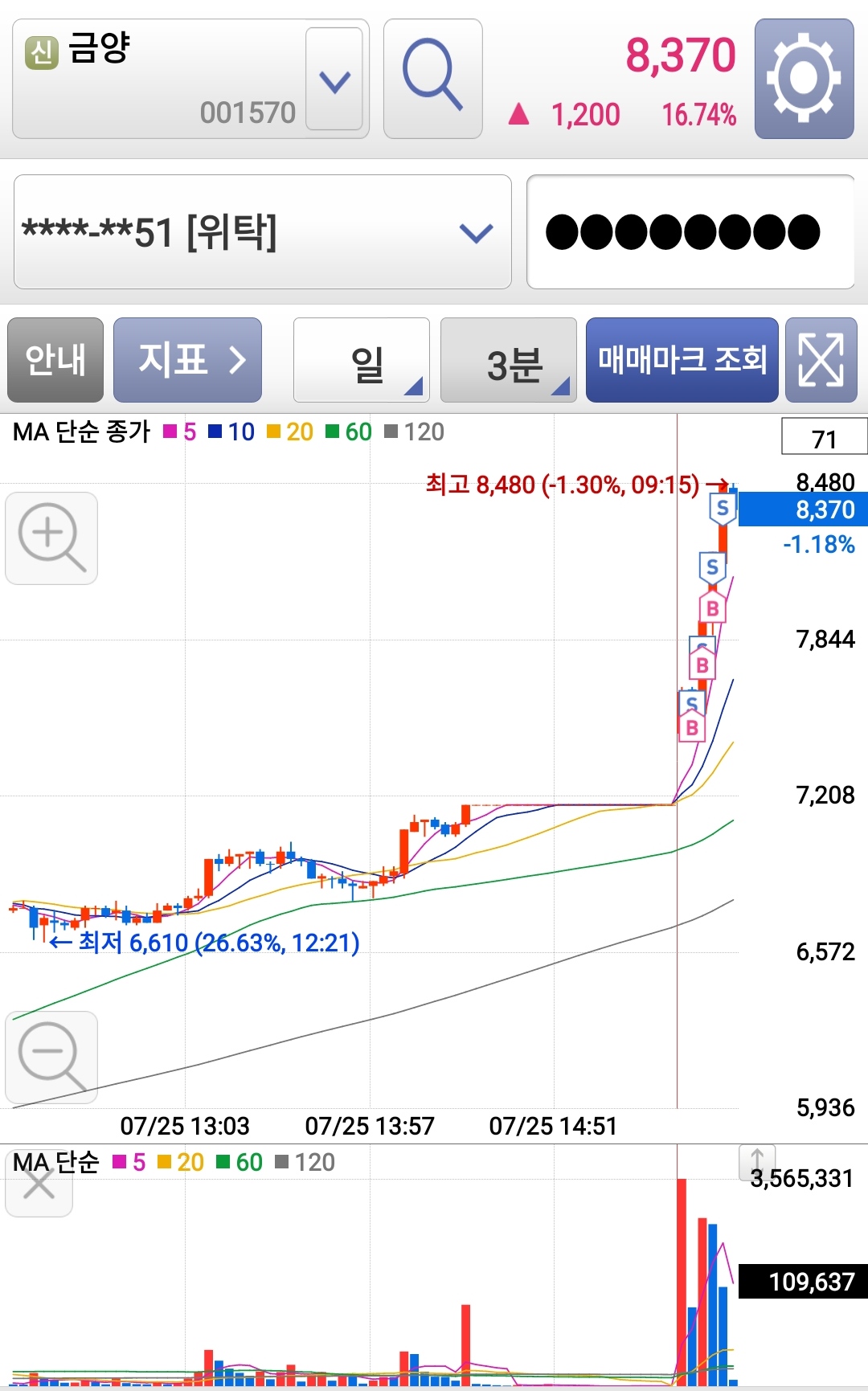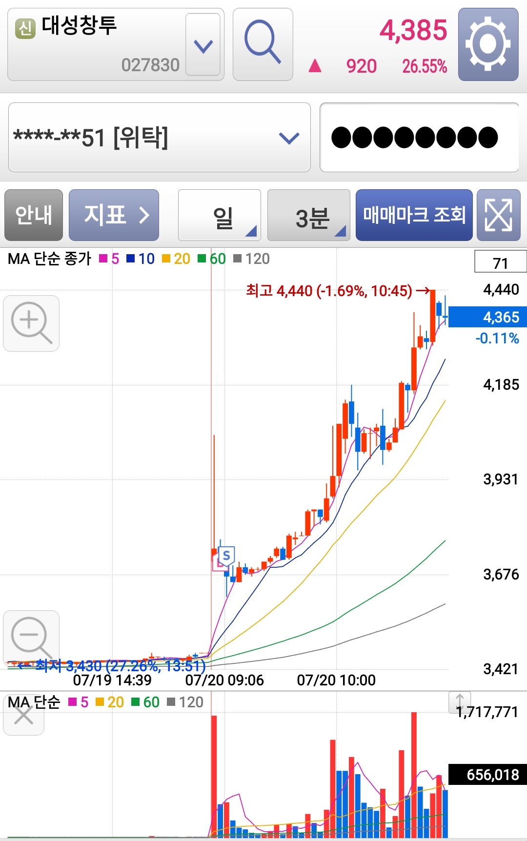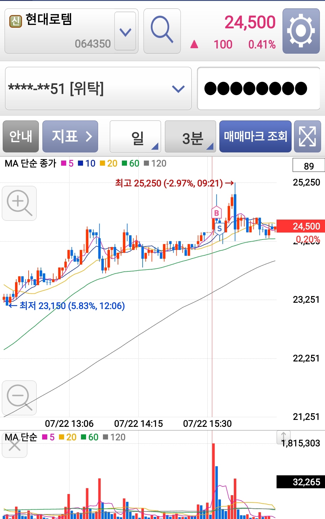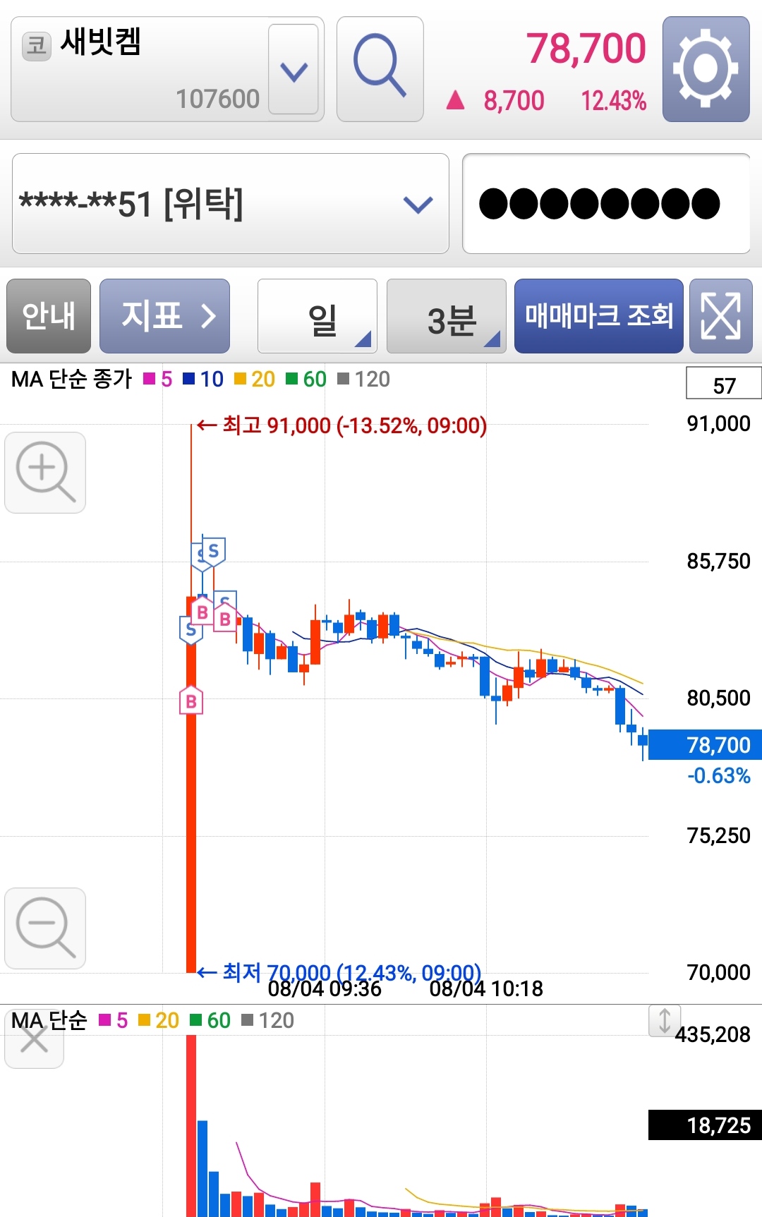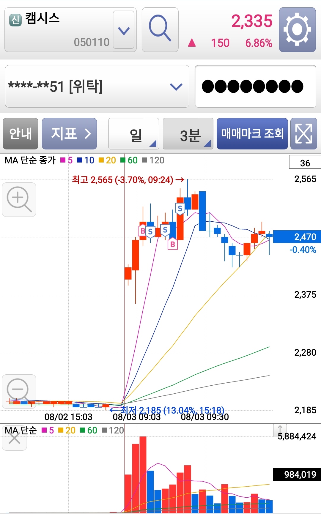 원금이 거의 50만원에 근접해지니 미수로 100만 원 있다 생각하고 당일 매매는 가능하지만, 종가배팅으로 미수 써서 들어갔더니 미수동결 계좌로 지정되어서 100만 원 매매가 불가능 해졌네요.