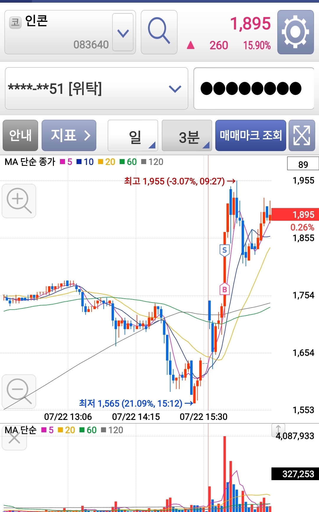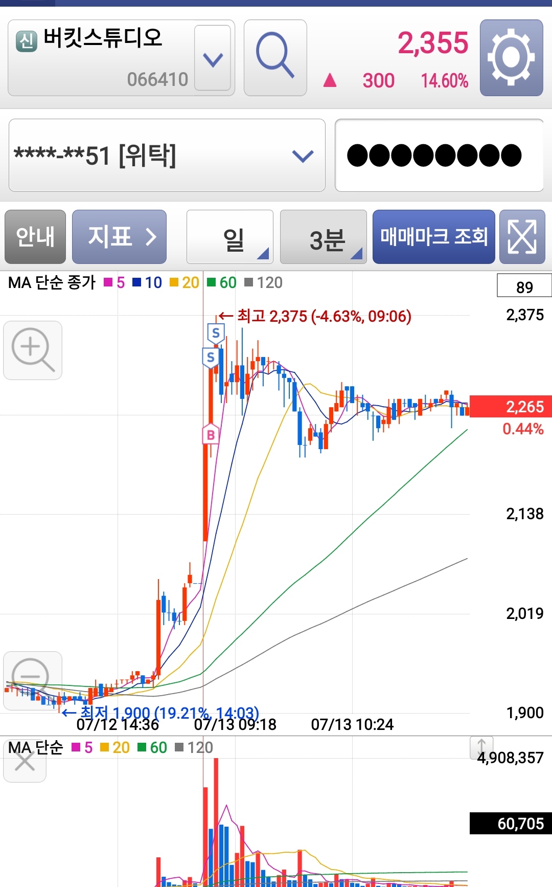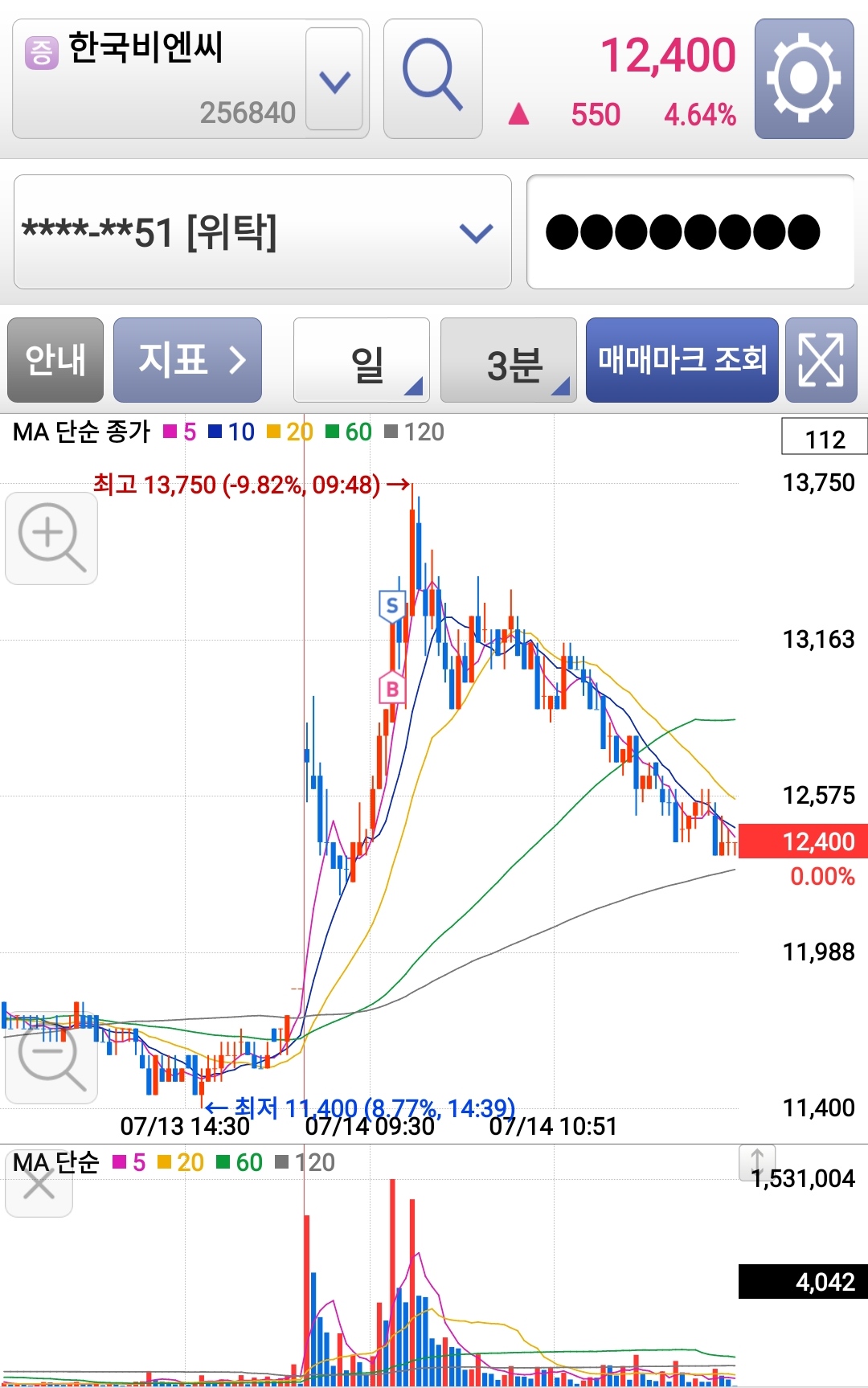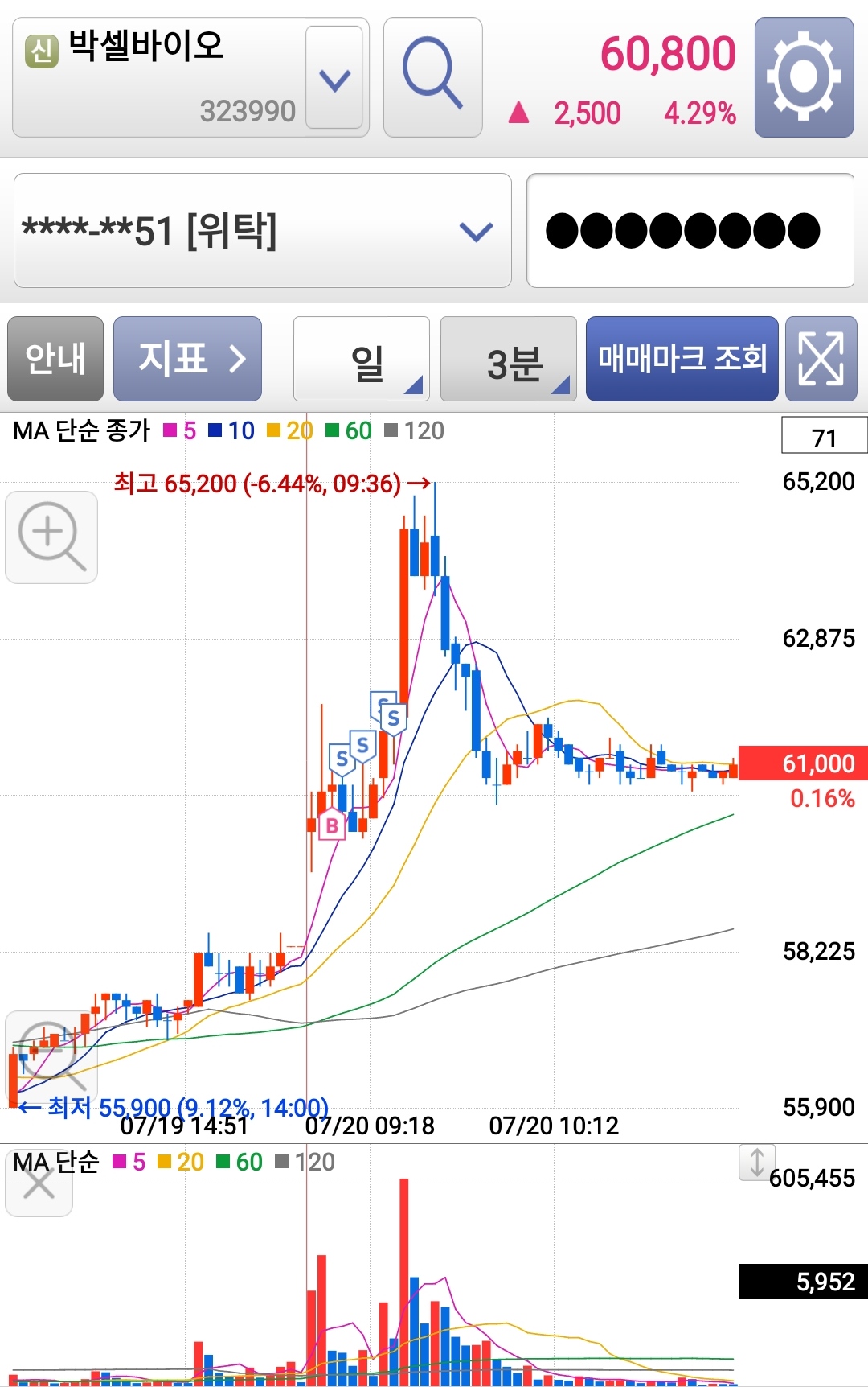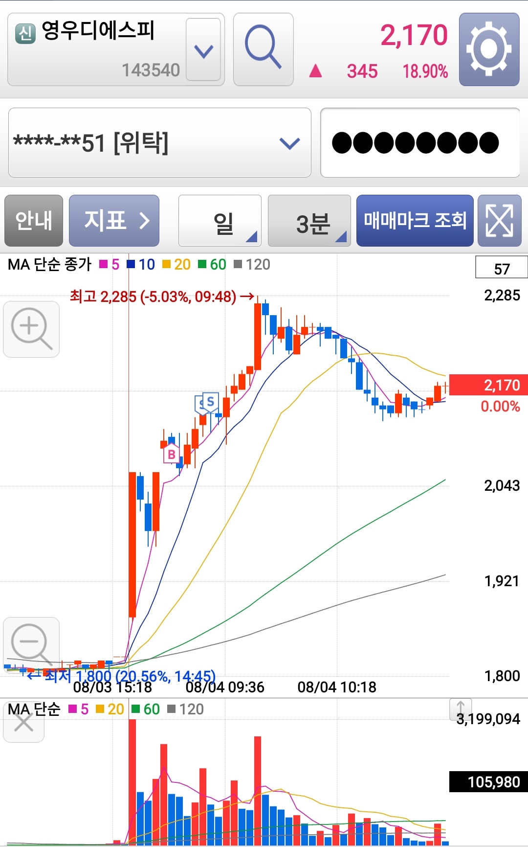 원금이 거의 50만원에 근접해지니 미수로 100만 원 있다 생각하고 당일 매매는 가능하지만, 종가배팅으로 미수 써서 들어갔더니 미수동결 계좌로 지정되어서 100만 원 매매가 불가능 해졌네요.