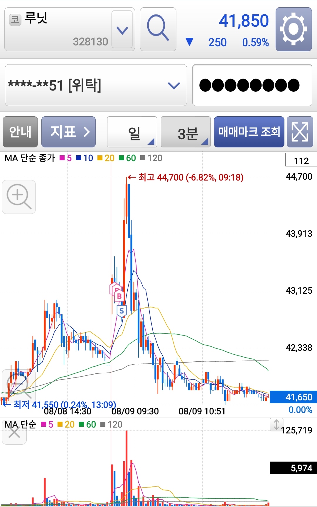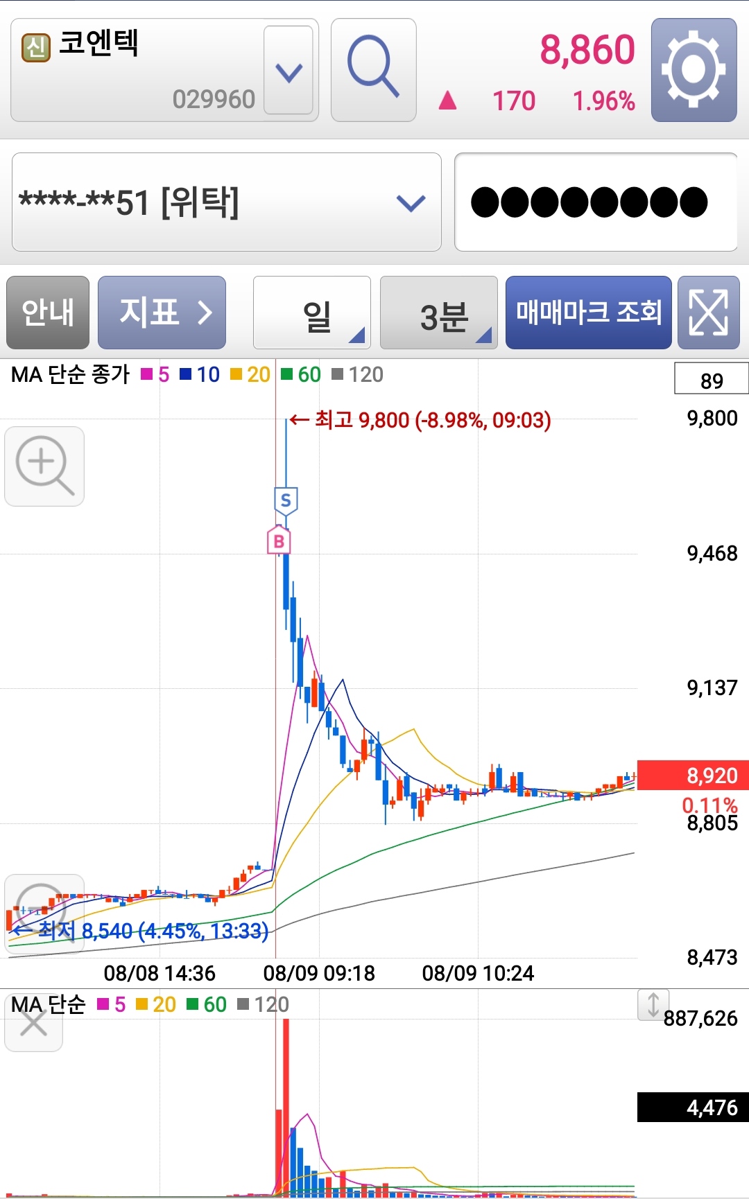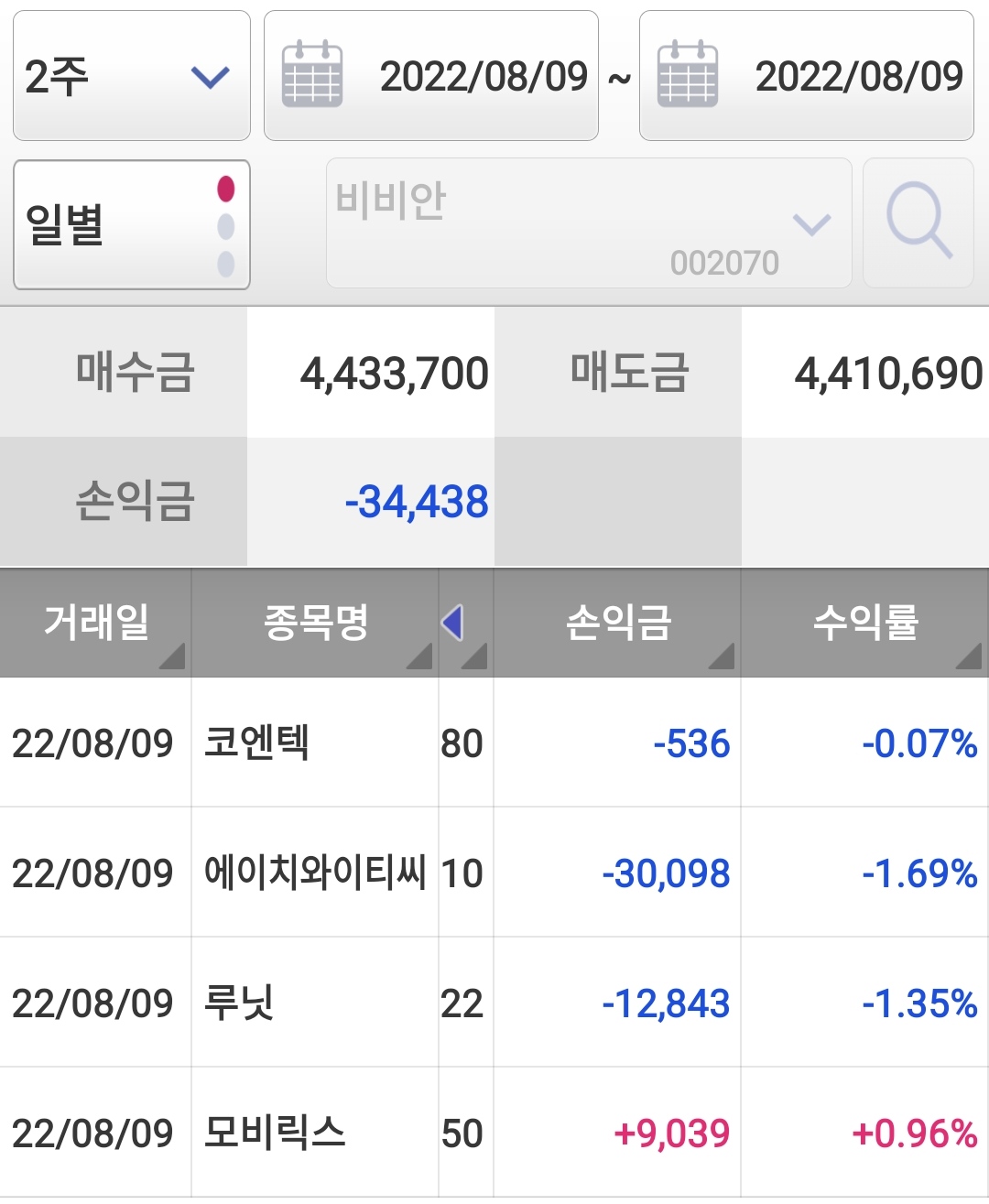 올려줄 때 못 팔고 본전에 팔아서 수수료 빼고 손실이네요.