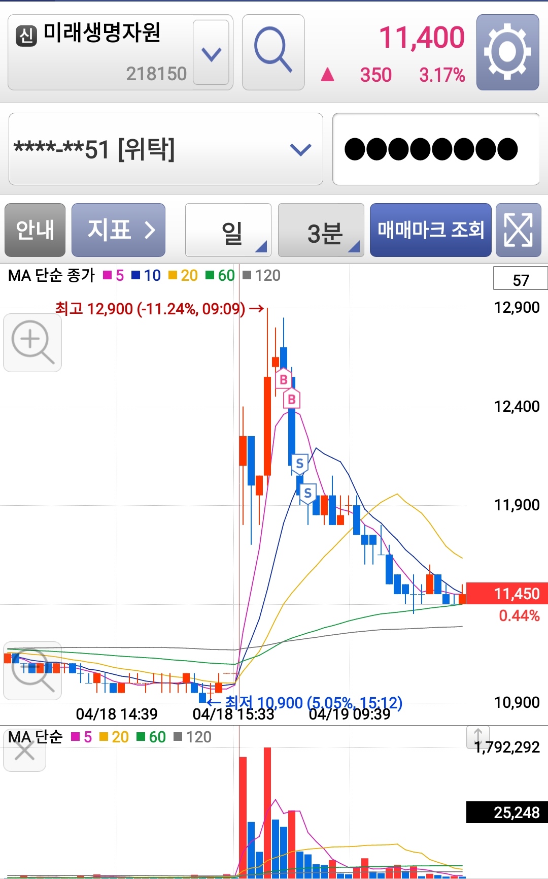 오늘 나름 괜찮은 매매를 한 것 같은데요. 미래생명자원 한 종목 손절을 제대로 못해서 손실이 크게 났네요.
