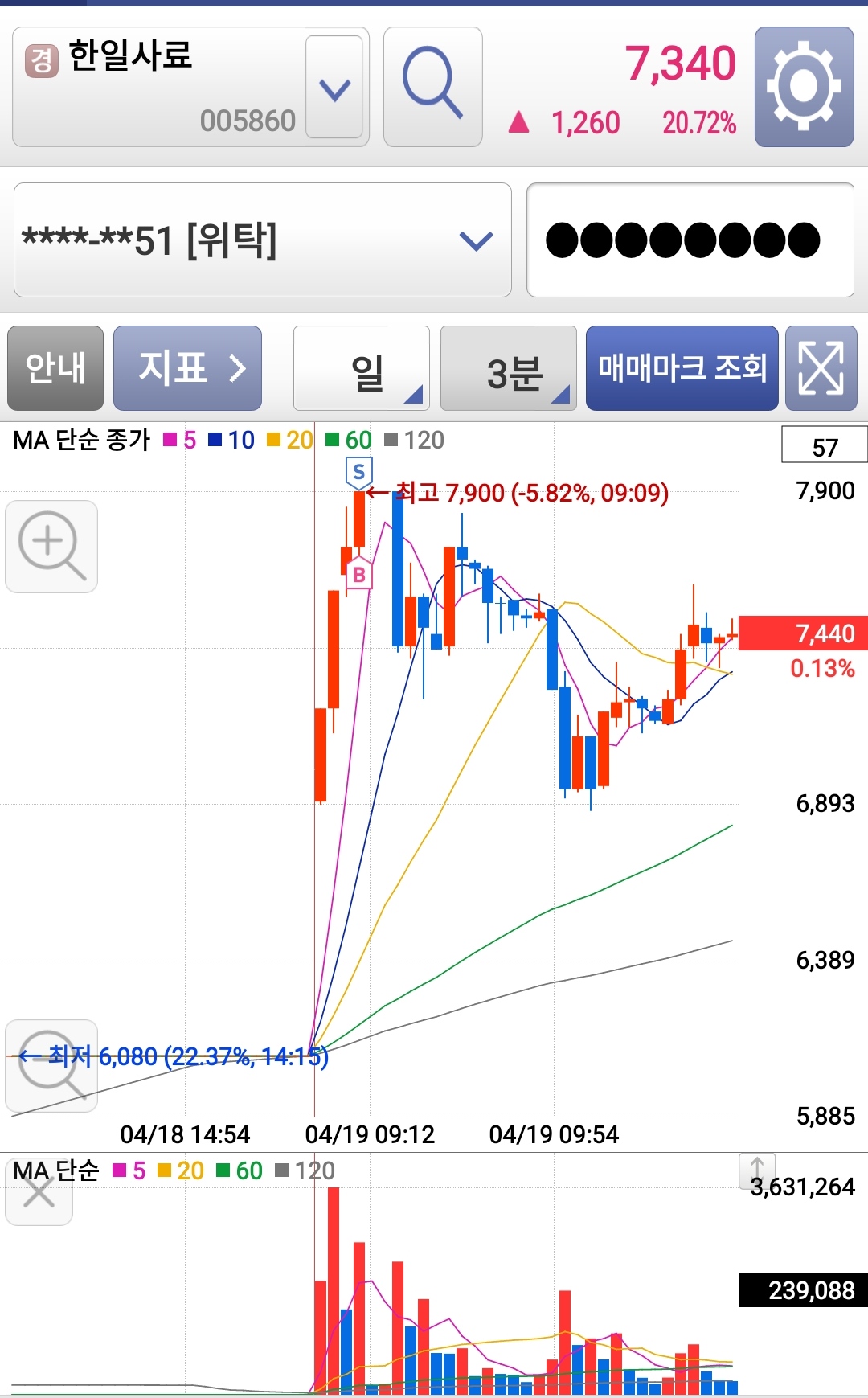 아침매매는 잘 되었는데, 장중매매가 문제네요. 또 제때 손절을 못해서 큰 손실을 봤네요.
