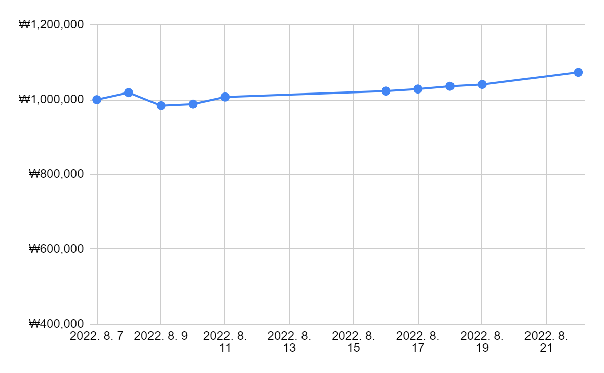 비중이 다 실렸으면 수익금이 더 좋았을 것 같은데... 그래도 괜찮은 수익이라 만족합니다.