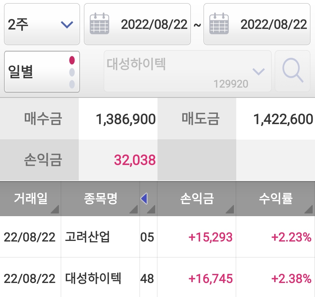 오늘은 대성하이텍, 고려산업 두종목 매매하였고요, 수익이 괜찮아서 기분이가 좋네요 ㅋㅋㅋ