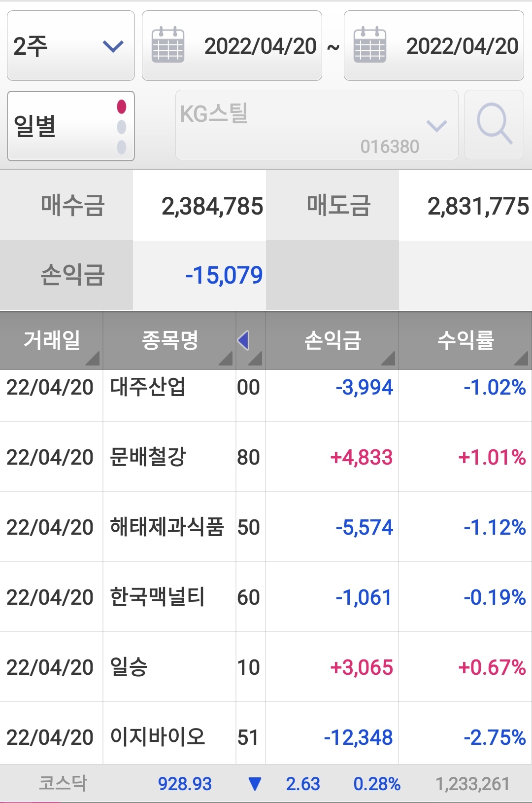 하지만 흔들어 대는걸 견디지 못하고 대부분 물량이 손절에 나가서 -1% 손실 기록 안타깝다.